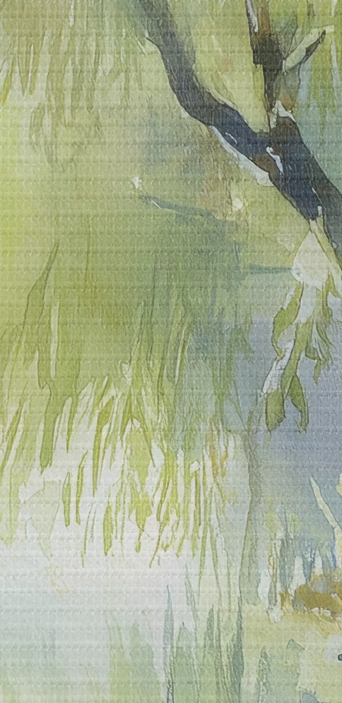 Selle lõuendi peenike niidipunus meenutab professionaalse kunstniku lõuendi pinda.