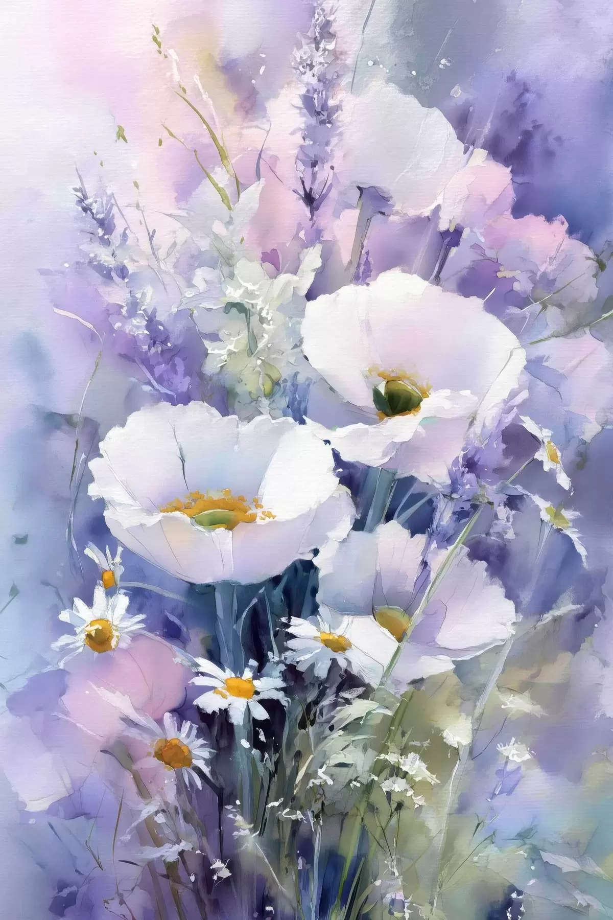 Maalid lilla ja valge toonides akvarellikimpp Nr s45720