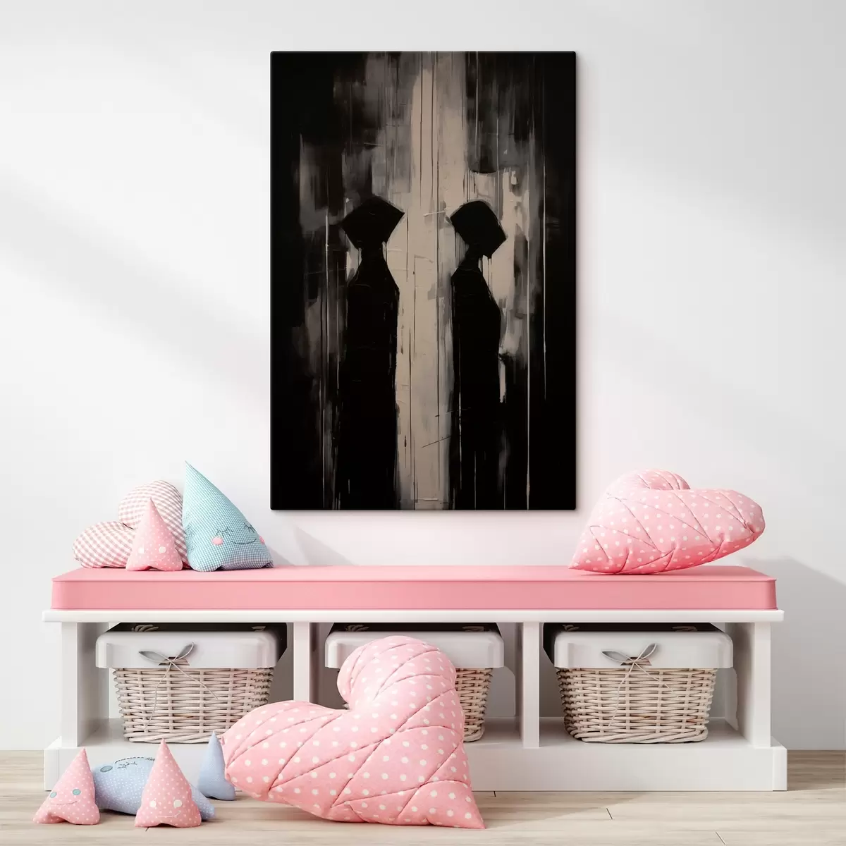 Maali võib riputada kohe pärast selle kättesaamist. Maal on pingutatud 2 cm laiusele puidust kandikule.