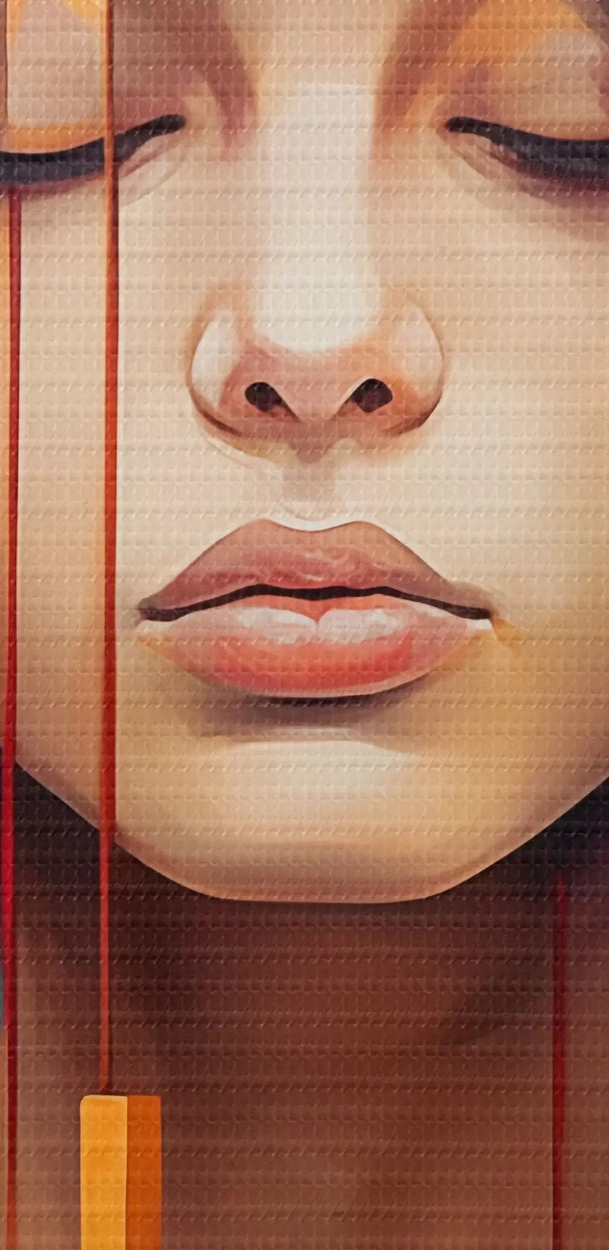 Selle lõuendi peenike niidipunus meenutab professionaalse kunstniku lõuendi pinda.