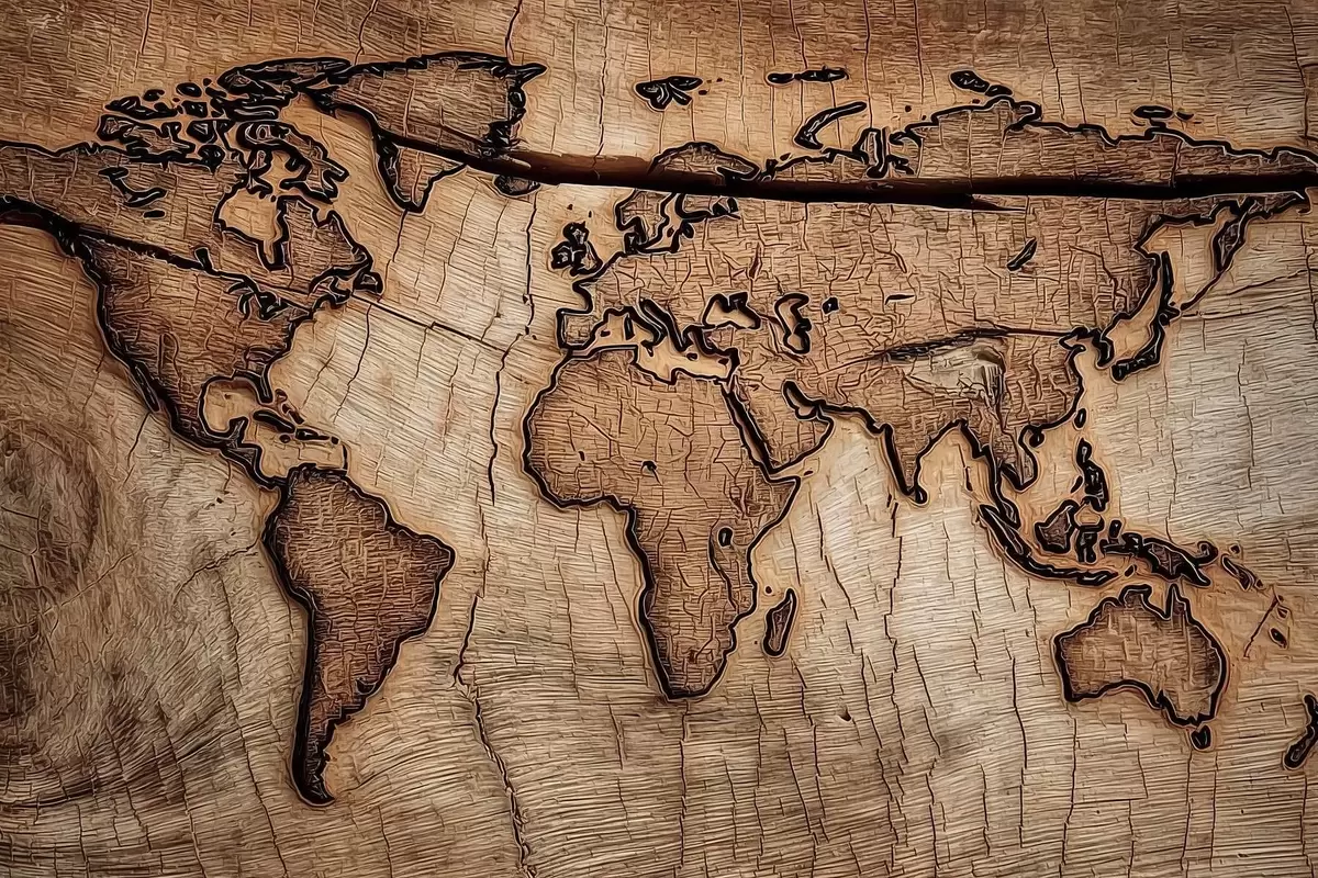 Maalid Graveeritud puidust maailmakaart Nr s45805