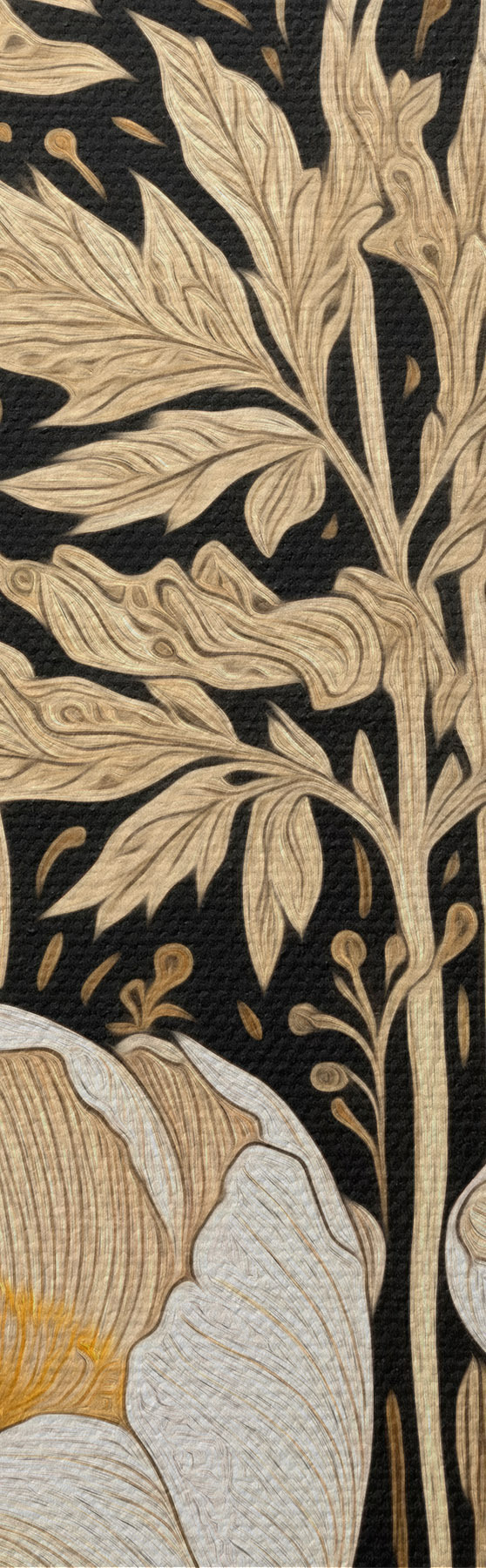 Maalid Kreemikarva lilled ja rohi mustal taustal Nr s45816