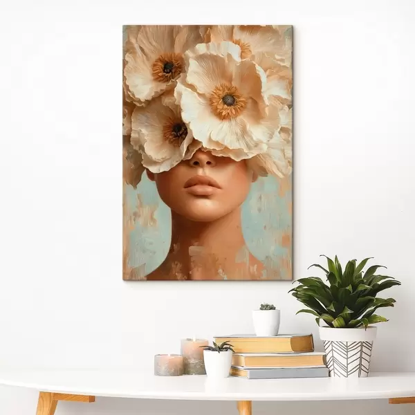 Maalid Portree, mille silmad on kaetud beežide lilledega Nr s45870