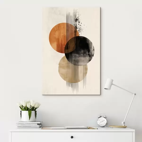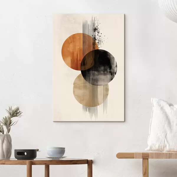 Maalid Kolm tekstuuriga ringi joontega terrakota-musta värvipalettiga Nr s45885