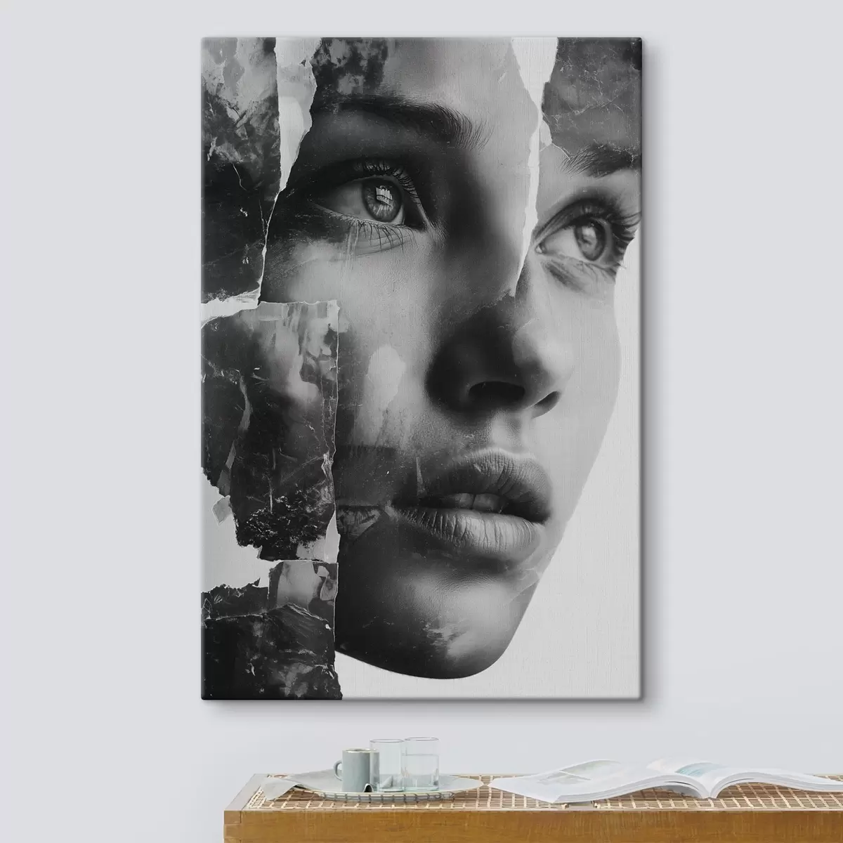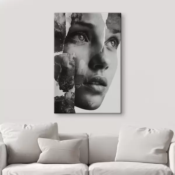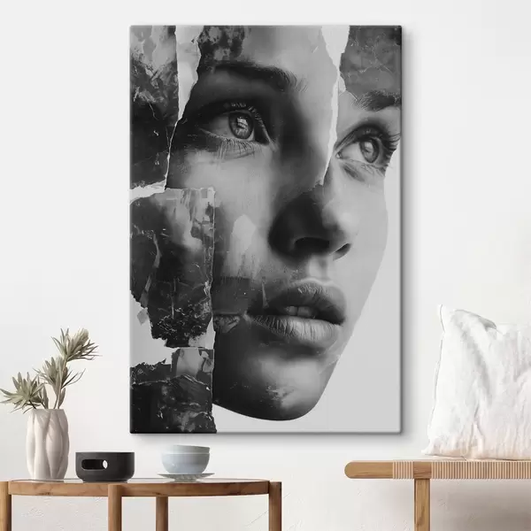 Maalid Must-valge kollaažportree rebitud tekstuuriga kihtidega Nr s45898