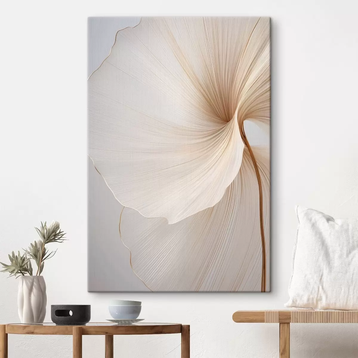 Maalid Abstraktsed lilled õhukeste, õrnade kroonlehtedega valge ja beeži toonides Nr s45922