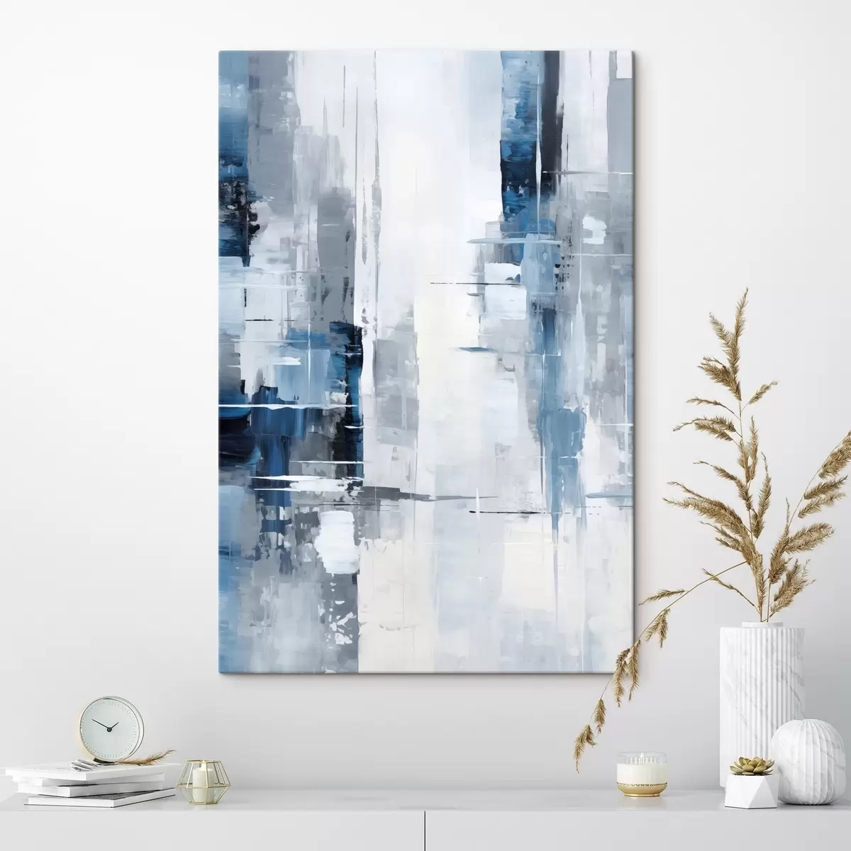 Maalid Abstraktne maal, mis imiteerib sinist, halli ja valget värvi, vertikaalseid jooni ja geomeetrilisi kujundeid Nr s45926