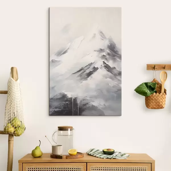 Maalid Lumised mäetipud hallide varjudega, hall taevas, pintslitõmbed, tekstuurne, minimalistlik Nr s45932