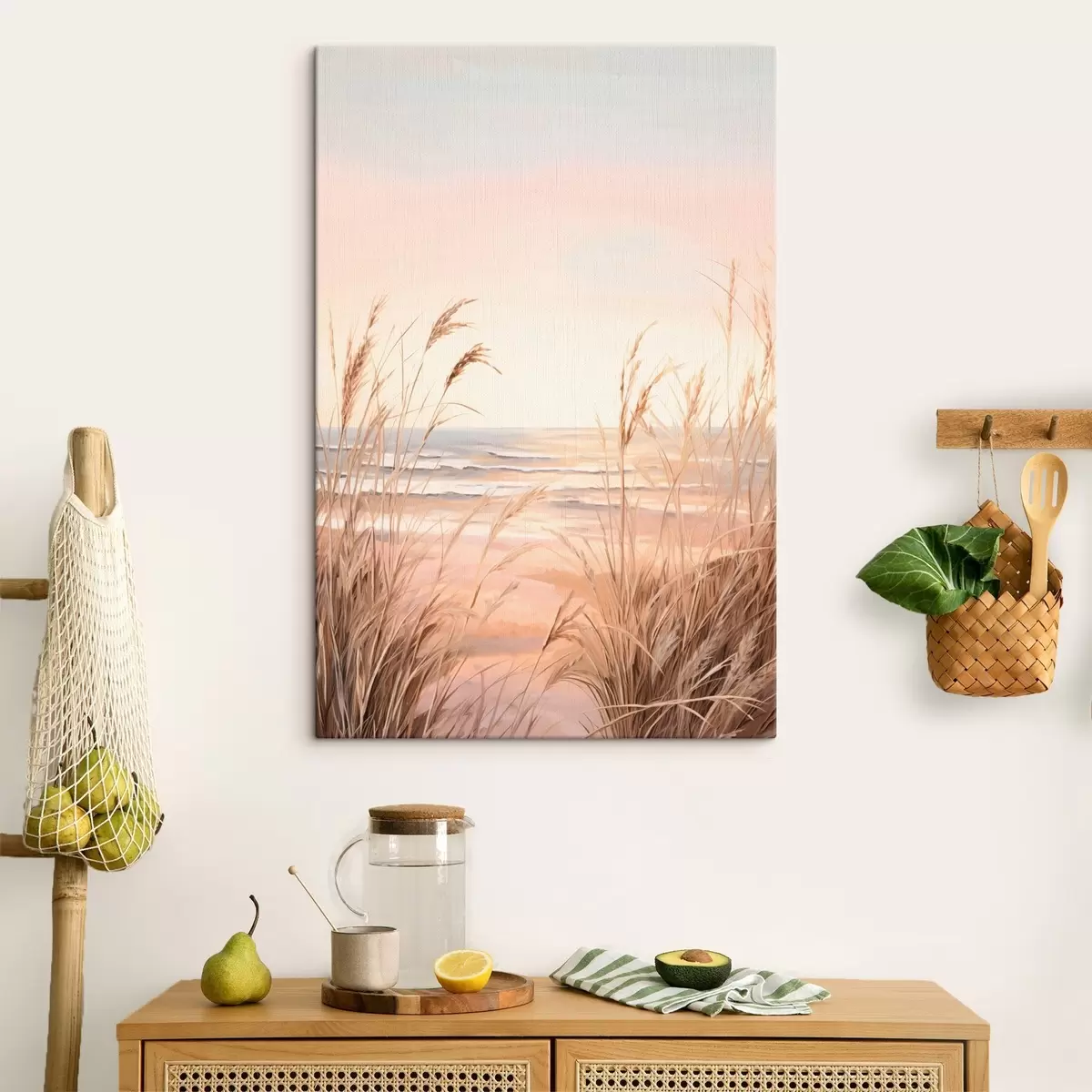 Maalid Pastelloranžide toonidega pampasrohi, heleroosa taevas, rahulik maastik Nr s45935