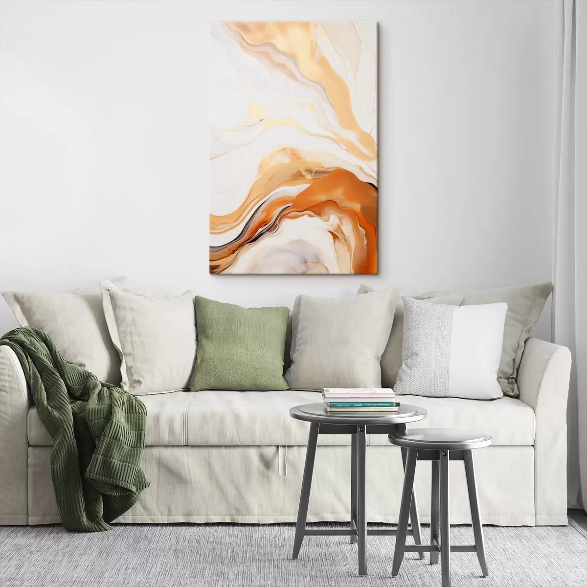 Maalid Abstraktne maal, mis imiteerib voolavaid kujundeid valge, oranži ja pruuni toonides, minimalistlik Nr s45938