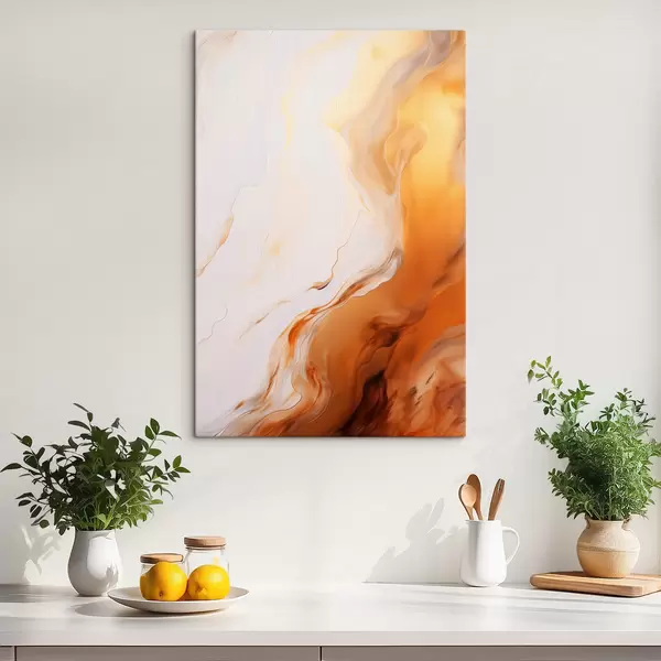 Maalid Abstraktne maal, imitatsioon valge ja oranži värvidega, voolav kunst laineliste joontega, modernne kunst Nr s45939