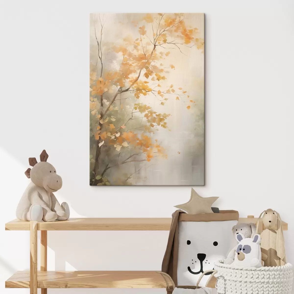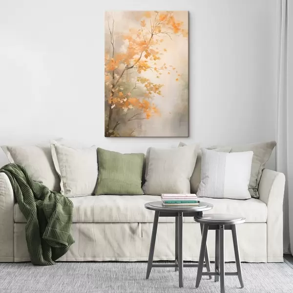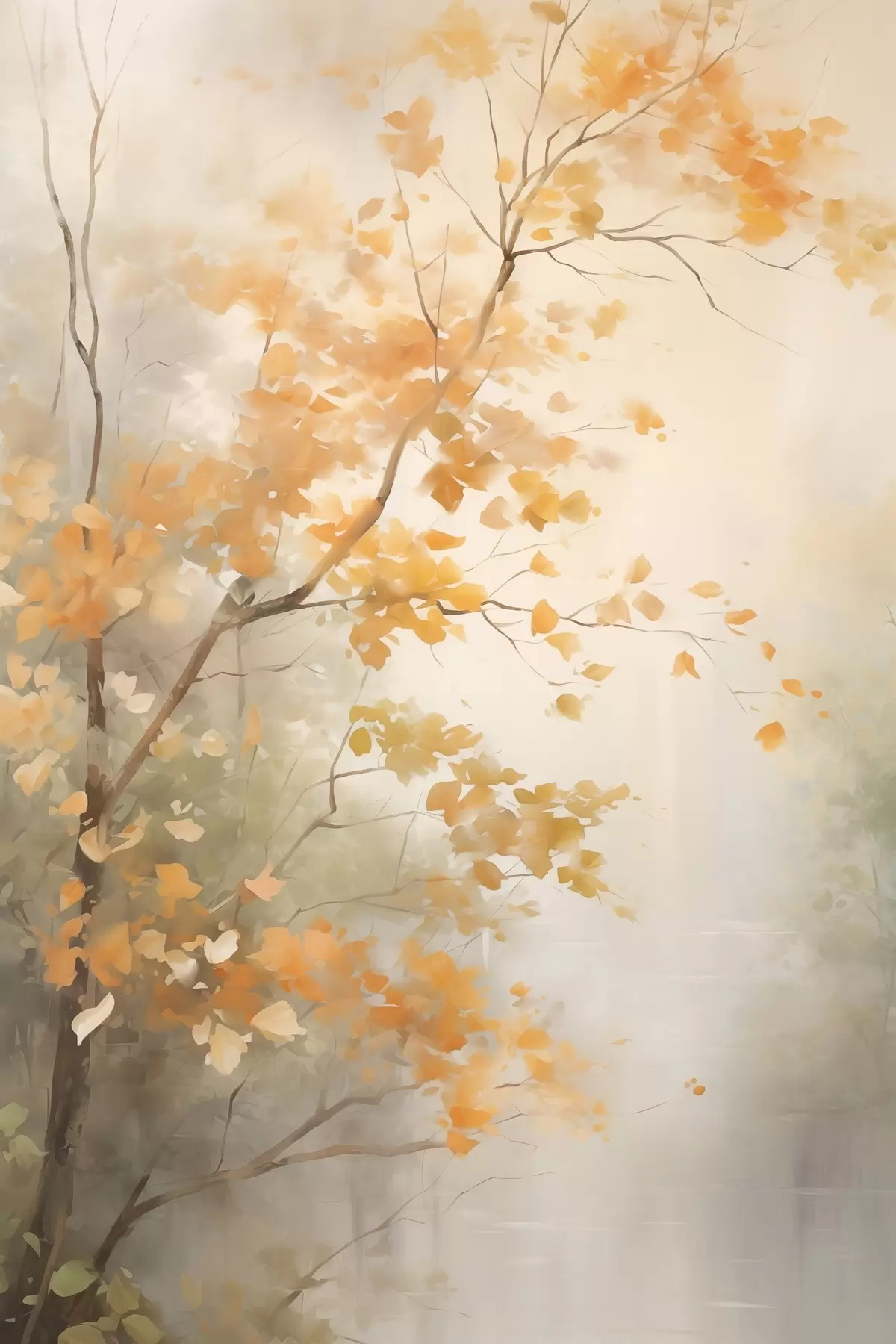 Maalid Sügisene puuoksad oranžide lehtedega metsas pehme valguses Nr s45940