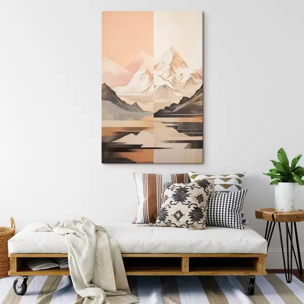 Maalid Abstraktne maastik mägedega ja järvega, pastelltoonid, minimalistlik stiil Nr s45948