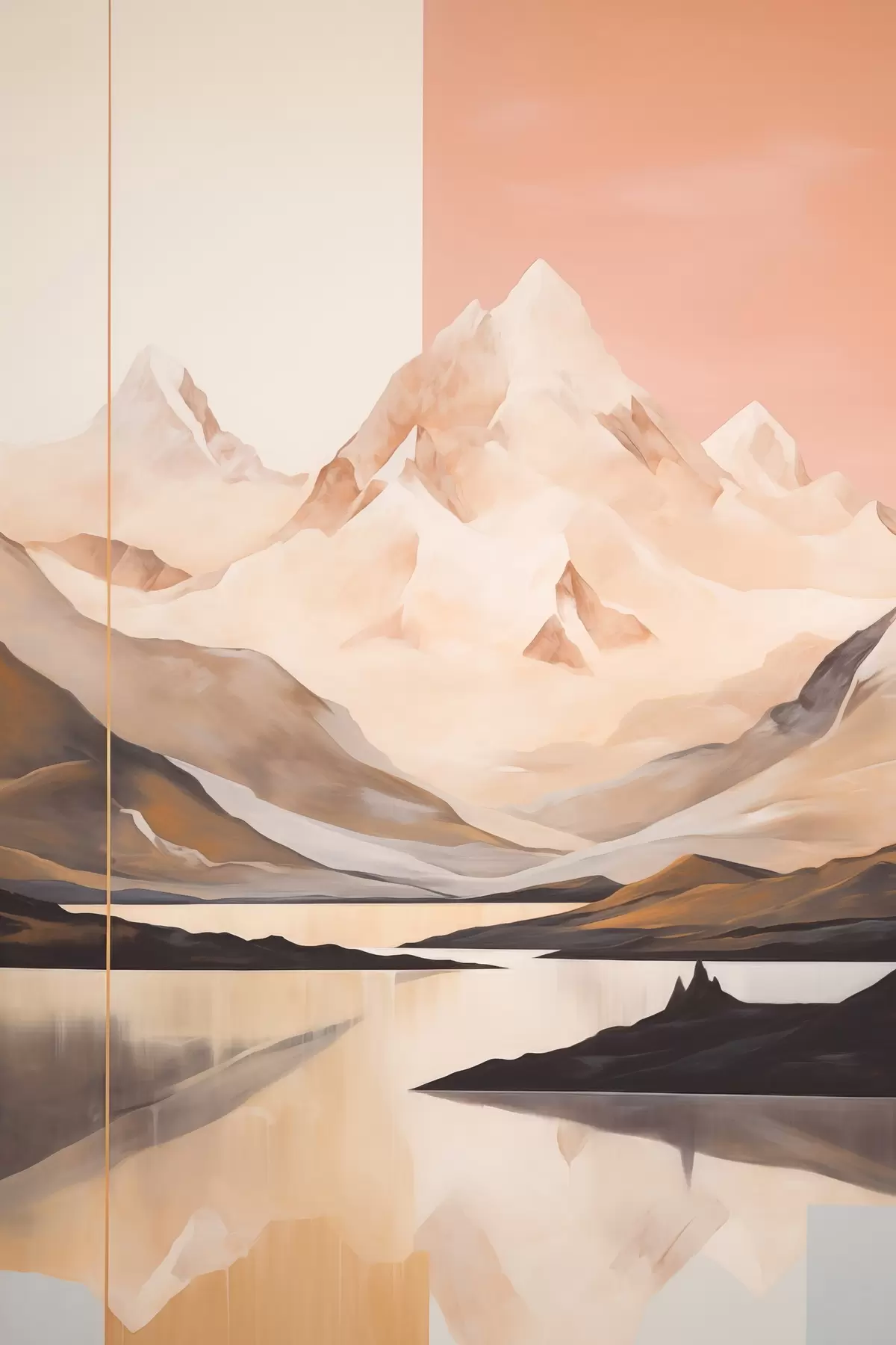 Maalid Abstraktne maastik mägedega ja järvega, pastelltoonid, minimalistlik stiil Nr s45949