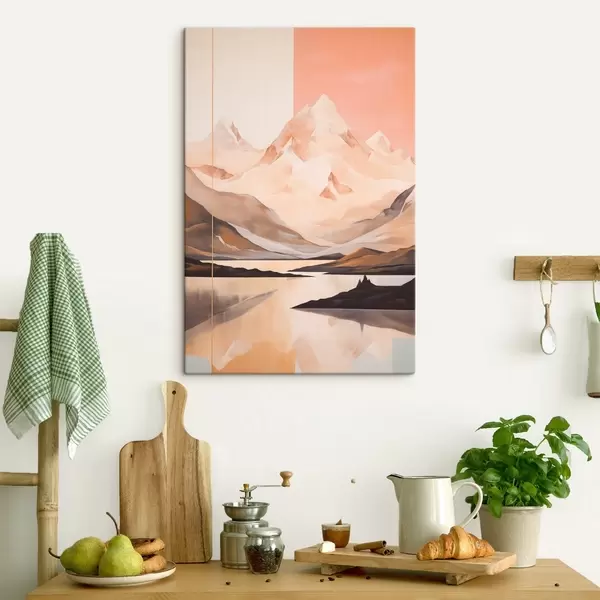 Maalid Abstraktne maastik mägedega ja järvega, pastelltoonid, minimalistlik stiil Nr s45949
