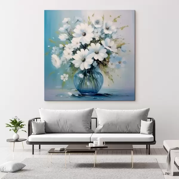 Maalid Sinises vaasis olev kimp margariite Nr s45959