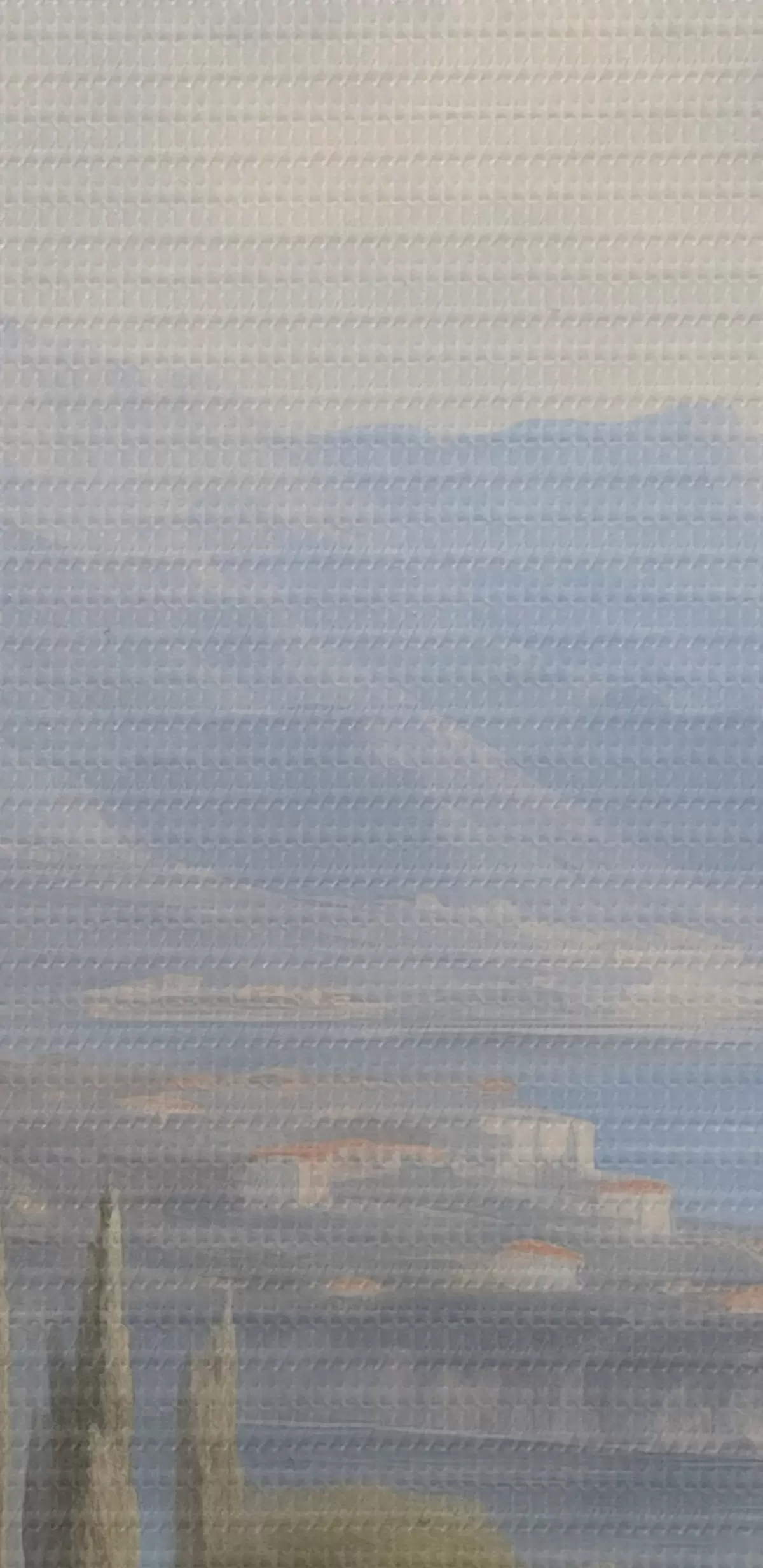 Selle lõuendi peenike niidipunus meenutab professionaalse kunstniku lõuendi pinda.