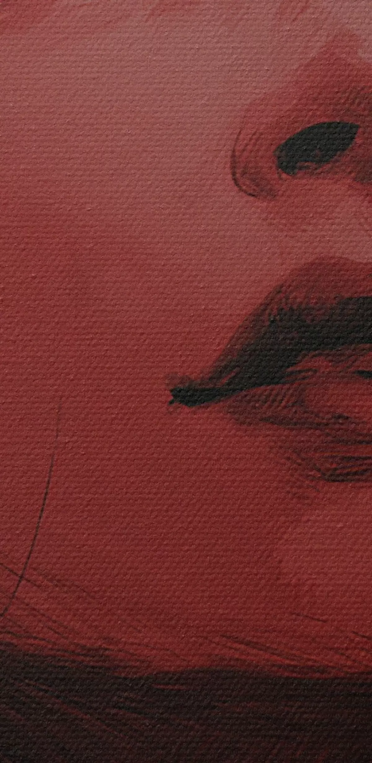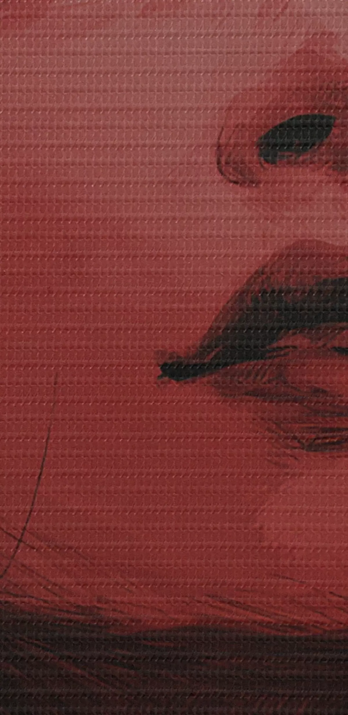Selle lõuendi peenike niidipunus meenutab professionaalse kunstniku lõuendi pinda.
