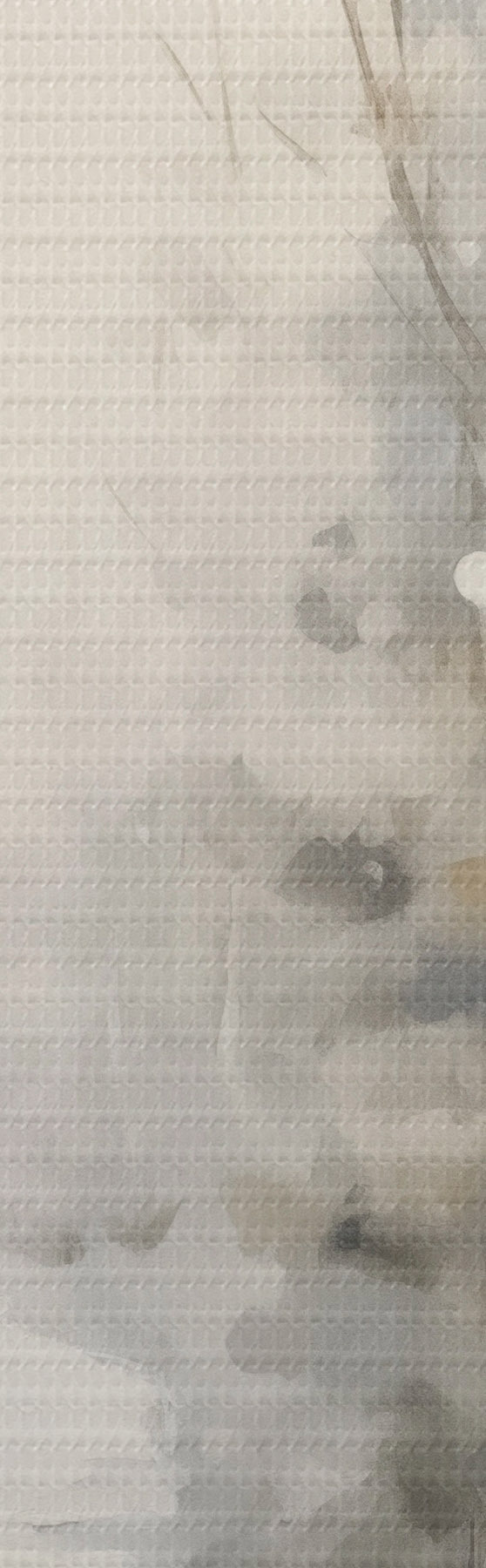 Selle lõuendi peenike niidipunus meenutab professionaalse kunstniku lõuendi pinda.