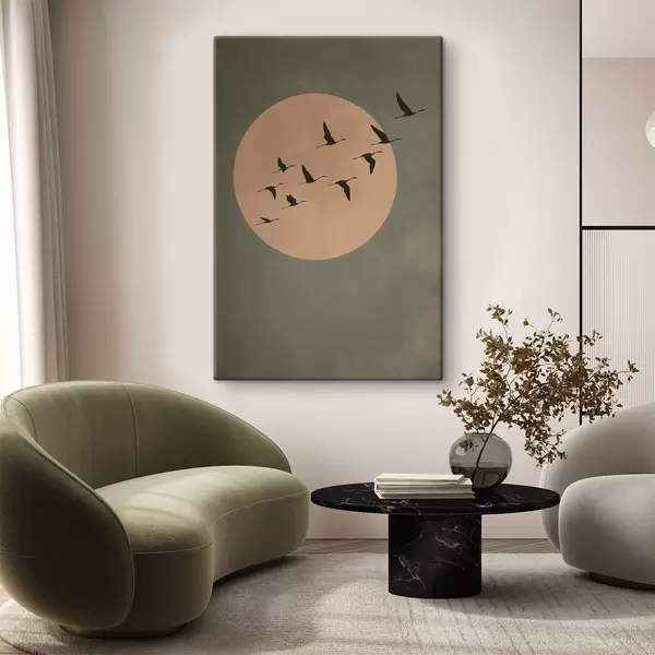 Pilt Lindude parv lendab suure sooja kuu taustal s46162