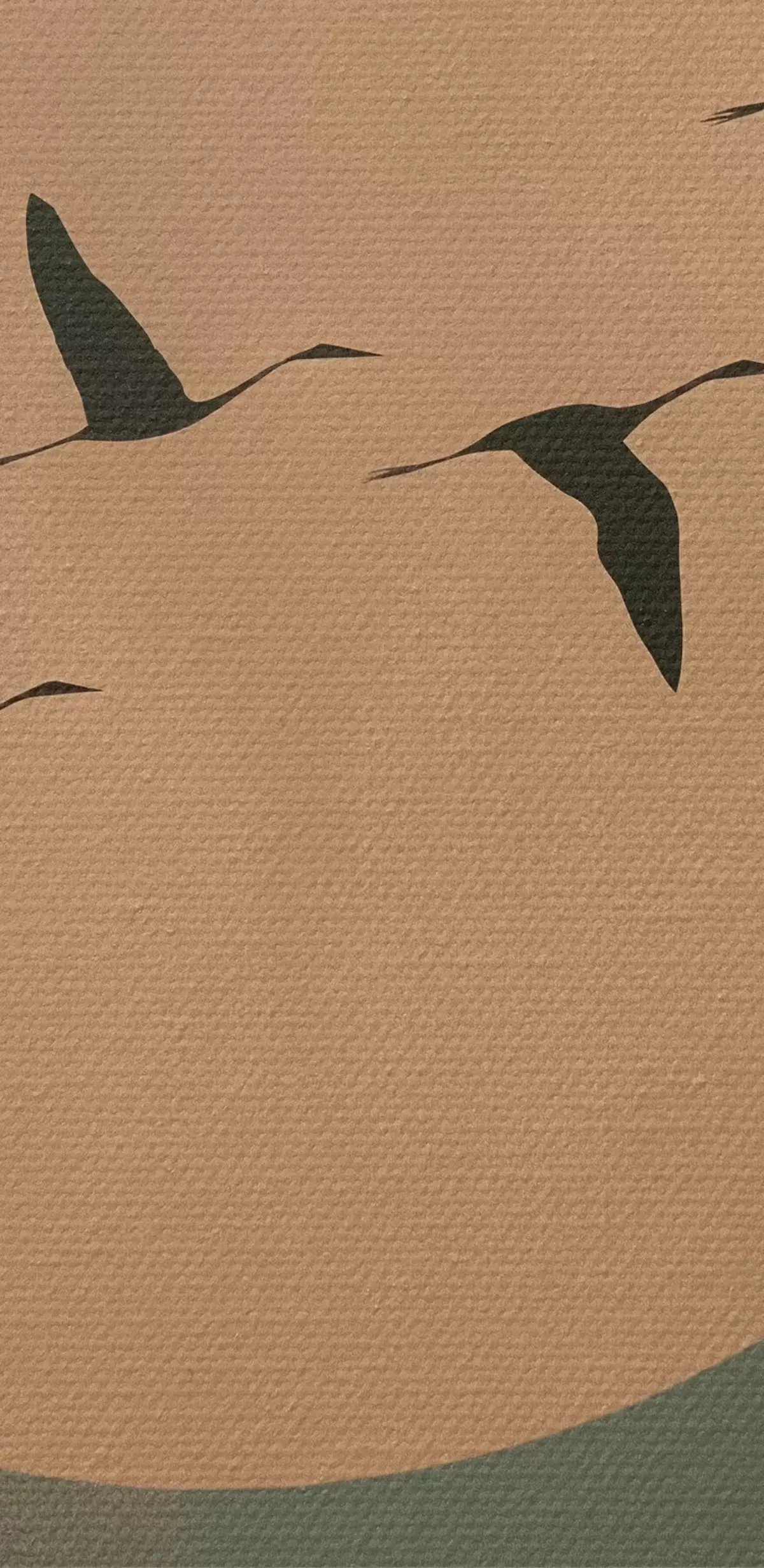 Maalid Lindude parv lendab suure sooja kuu taustal Nr s46162
