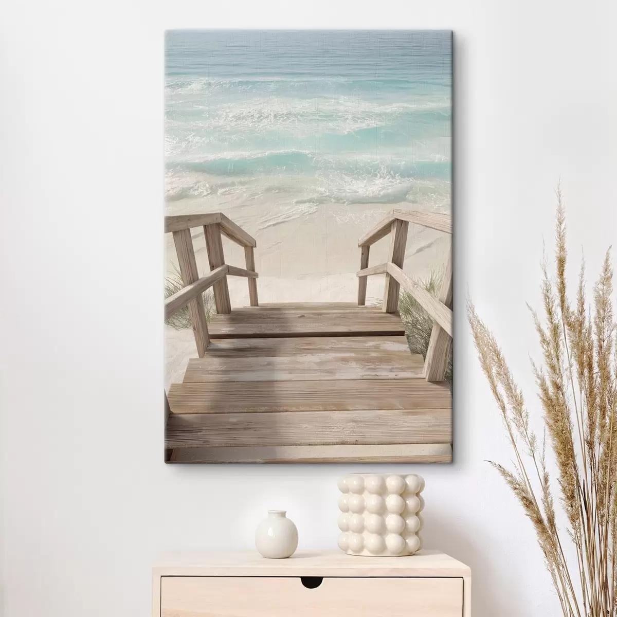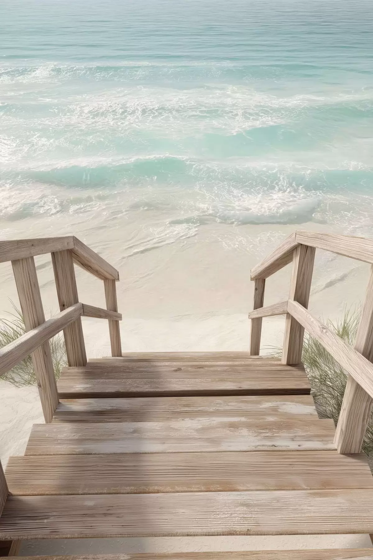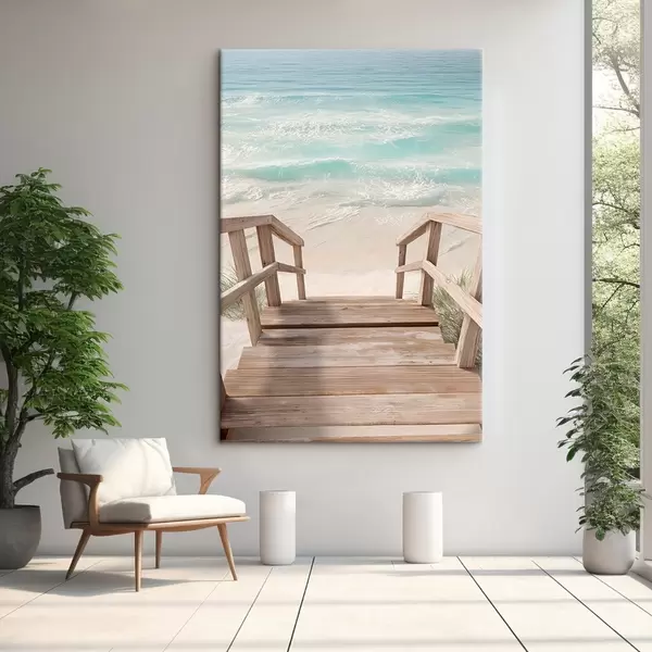 Maalid Puidust trepid, mis viivad türkiissinise rannani Nr s46163