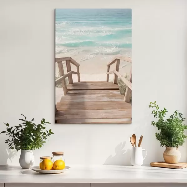 Maalid Puidust trepid, mis viivad türkiissinise rannani Nr s46163