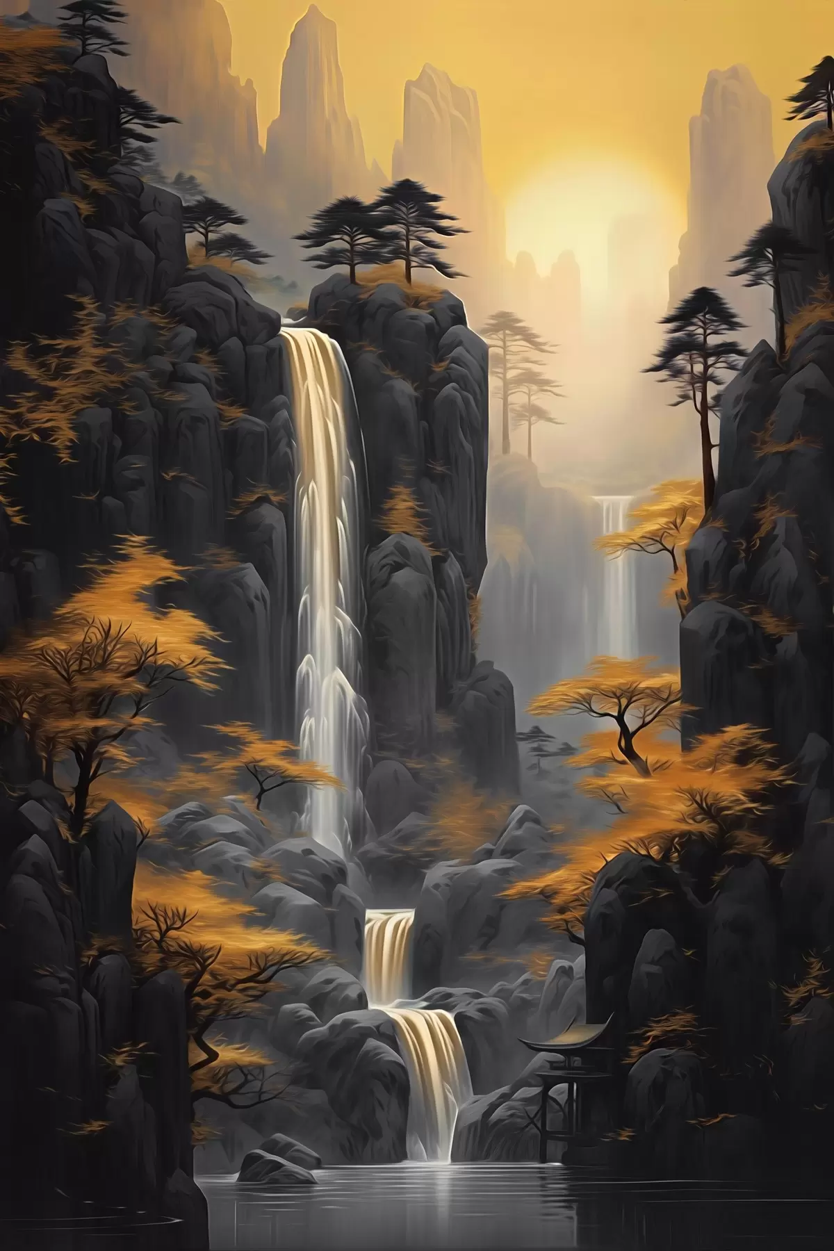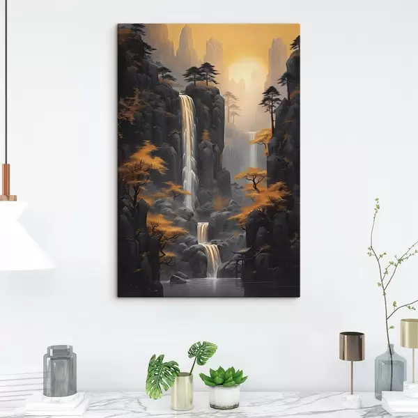 Maalid Kivine maastik koos kosega soojades päikeseloojangu toonides Nr s46177