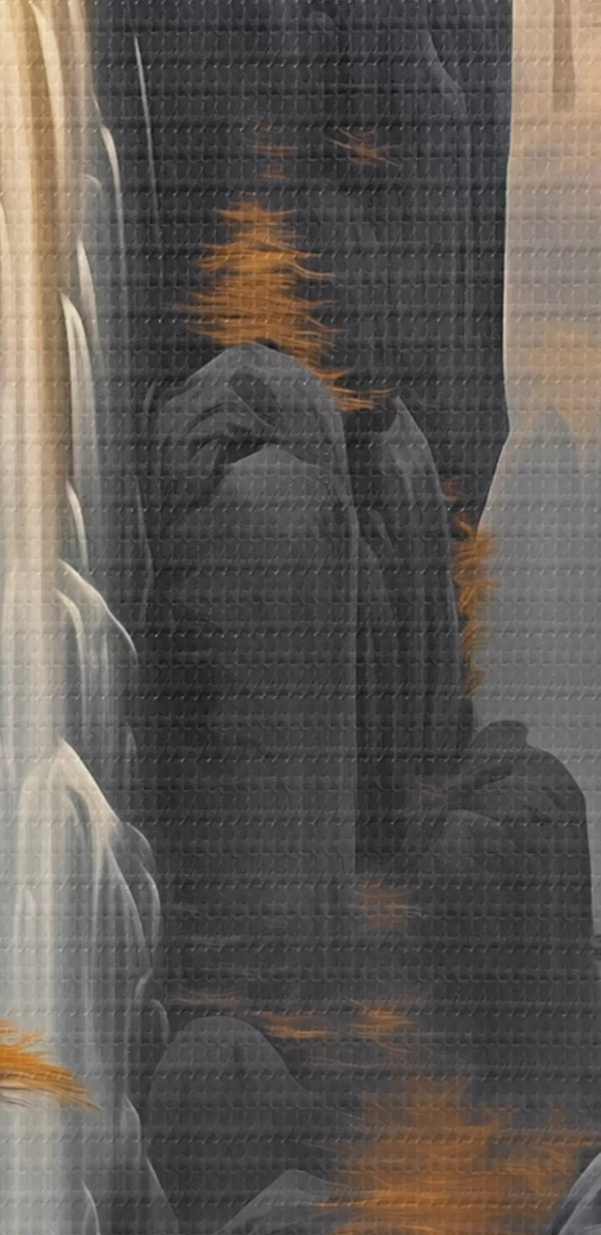 Selle lõuendi peenike niidipunus meenutab professionaalse kunstniku lõuendi pinda.
