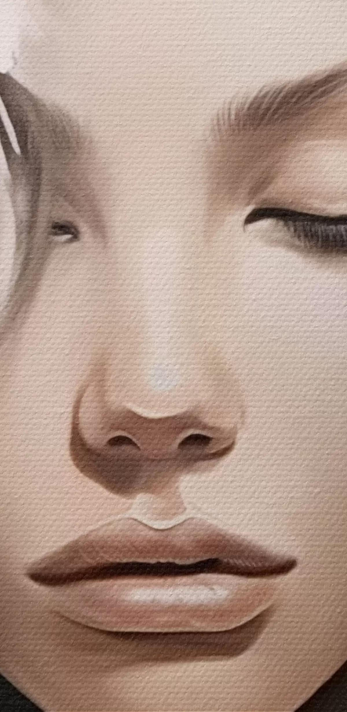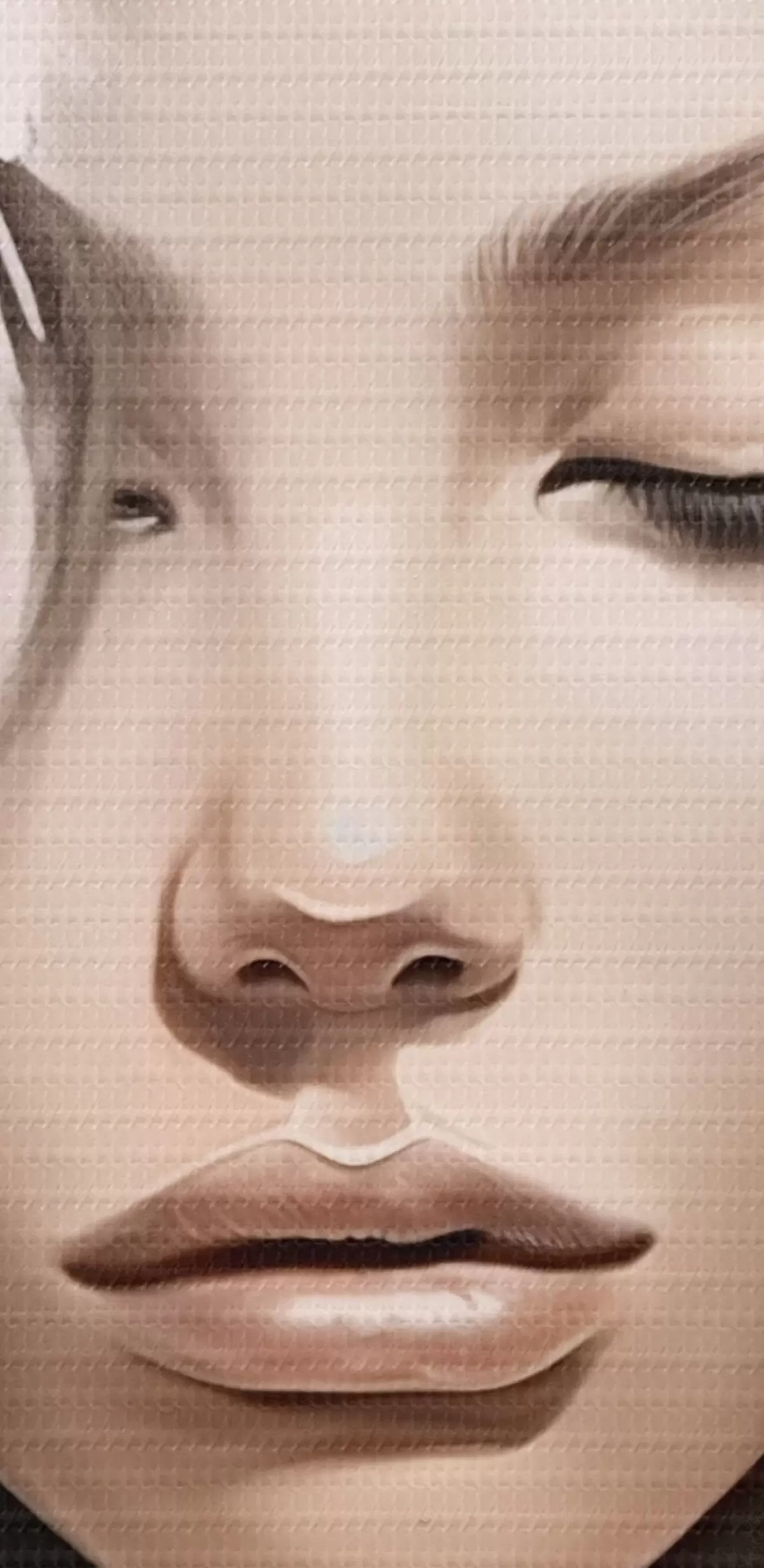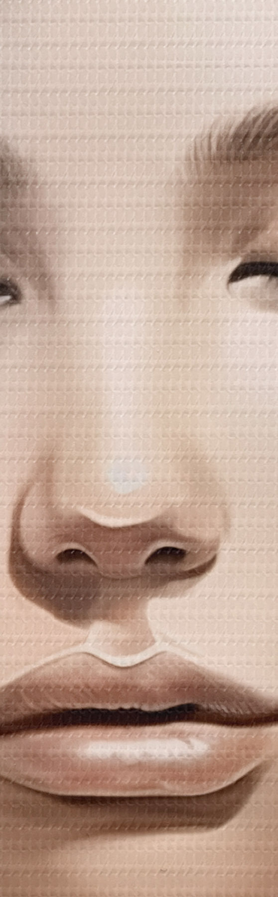 Selle lõuendi peenike niidipunus meenutab professionaalse kunstniku lõuendi pinda.