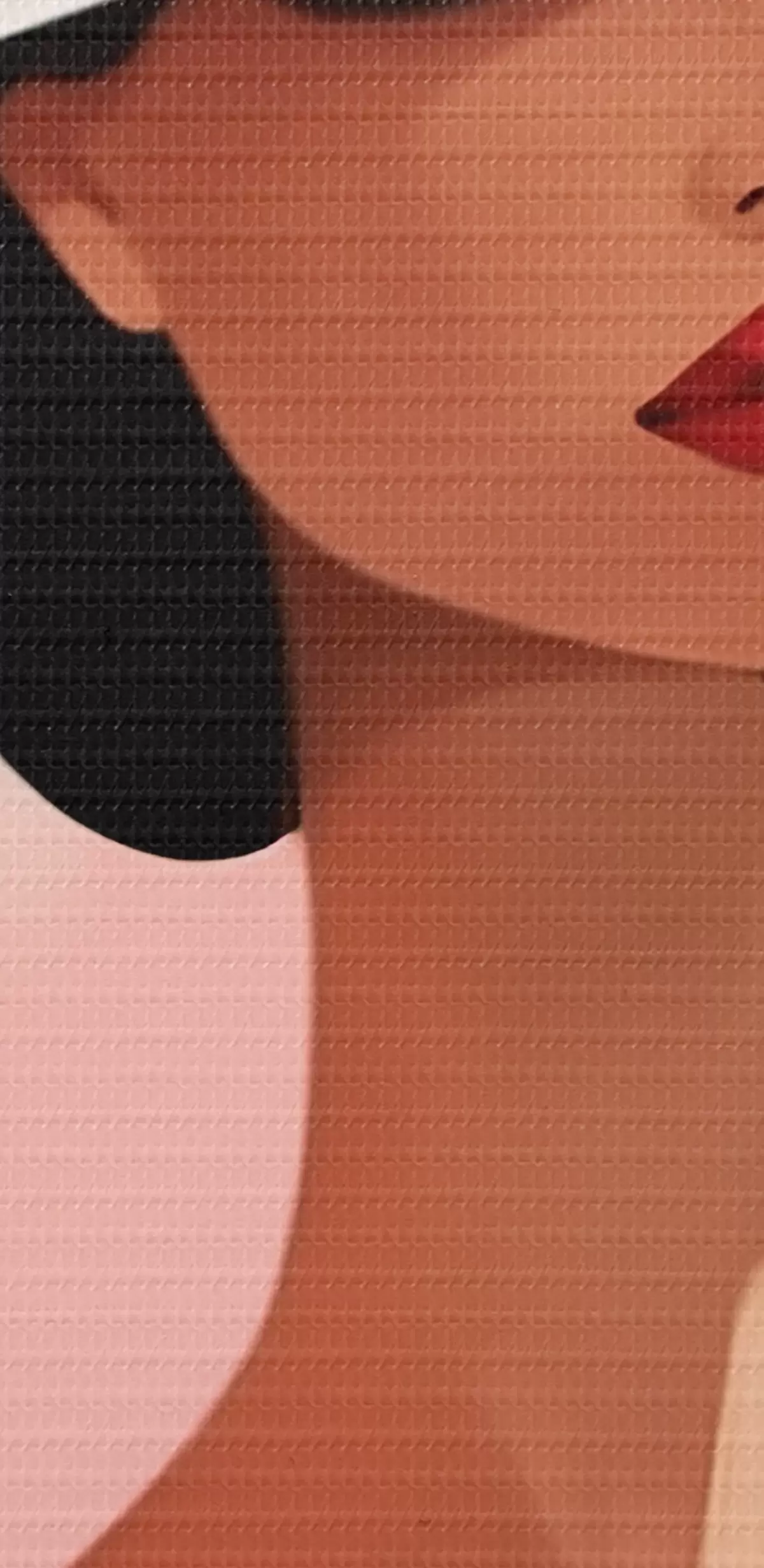 Selle lõuendi peenike niidipunus meenutab professionaalse kunstniku lõuendi pinda.