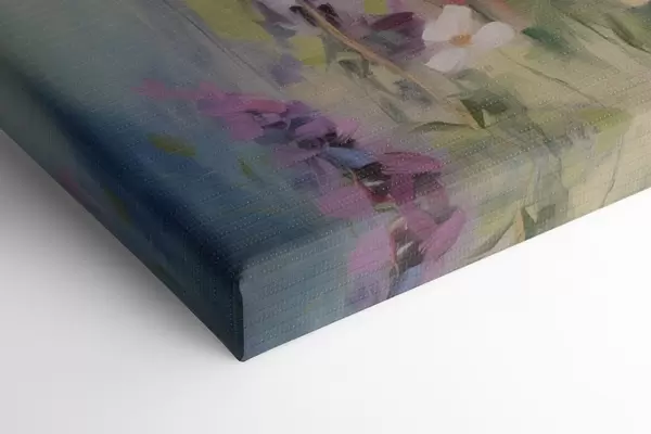 Maalid Roosad ja lillad lilled koos valgetega põldlilledega põllul, pehmed pintslitõmbed, pastellvärvid, impressionistlik stiil Nr s46279
