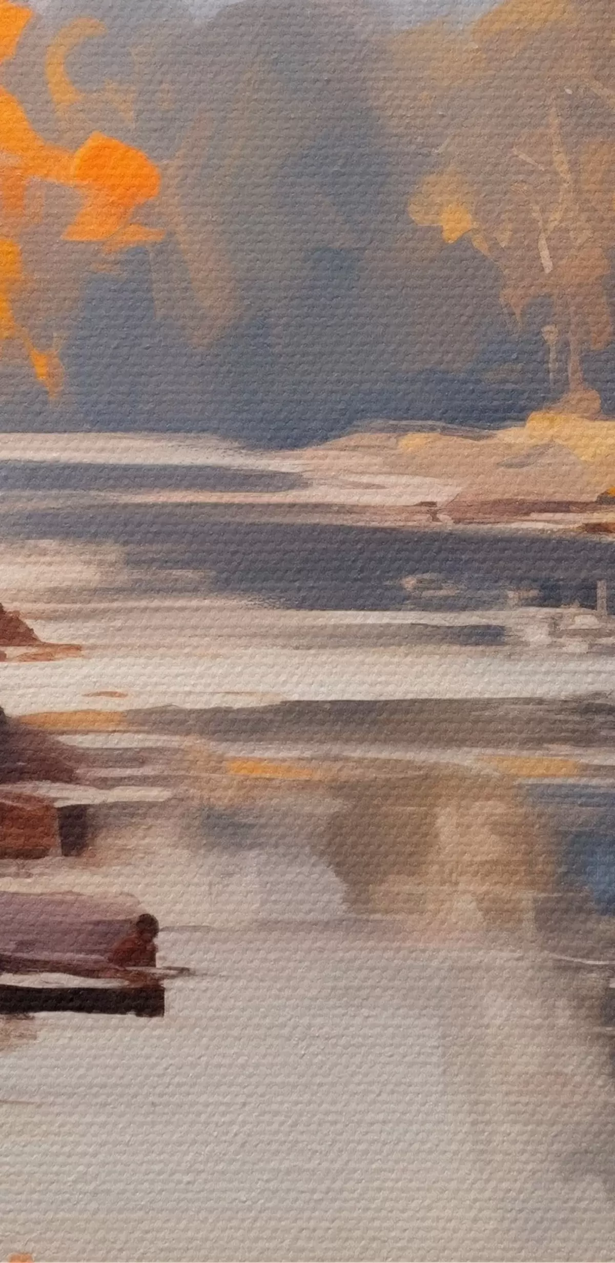 Selle lõuendi peenike niidipunus meenutab professionaalse kunstniku lõuendi pinda.