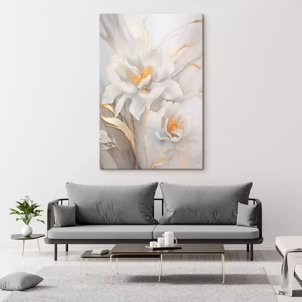 Maalid Valged õied kollaste emakate ja vartega, õrnad kroonlehed, elegantne kompositsioon, neutraalne taust Nr s46293