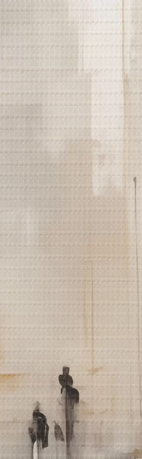 Selle lõuendi peenike niidipunus meenutab professionaalse kunstniku lõuendi pinda.
