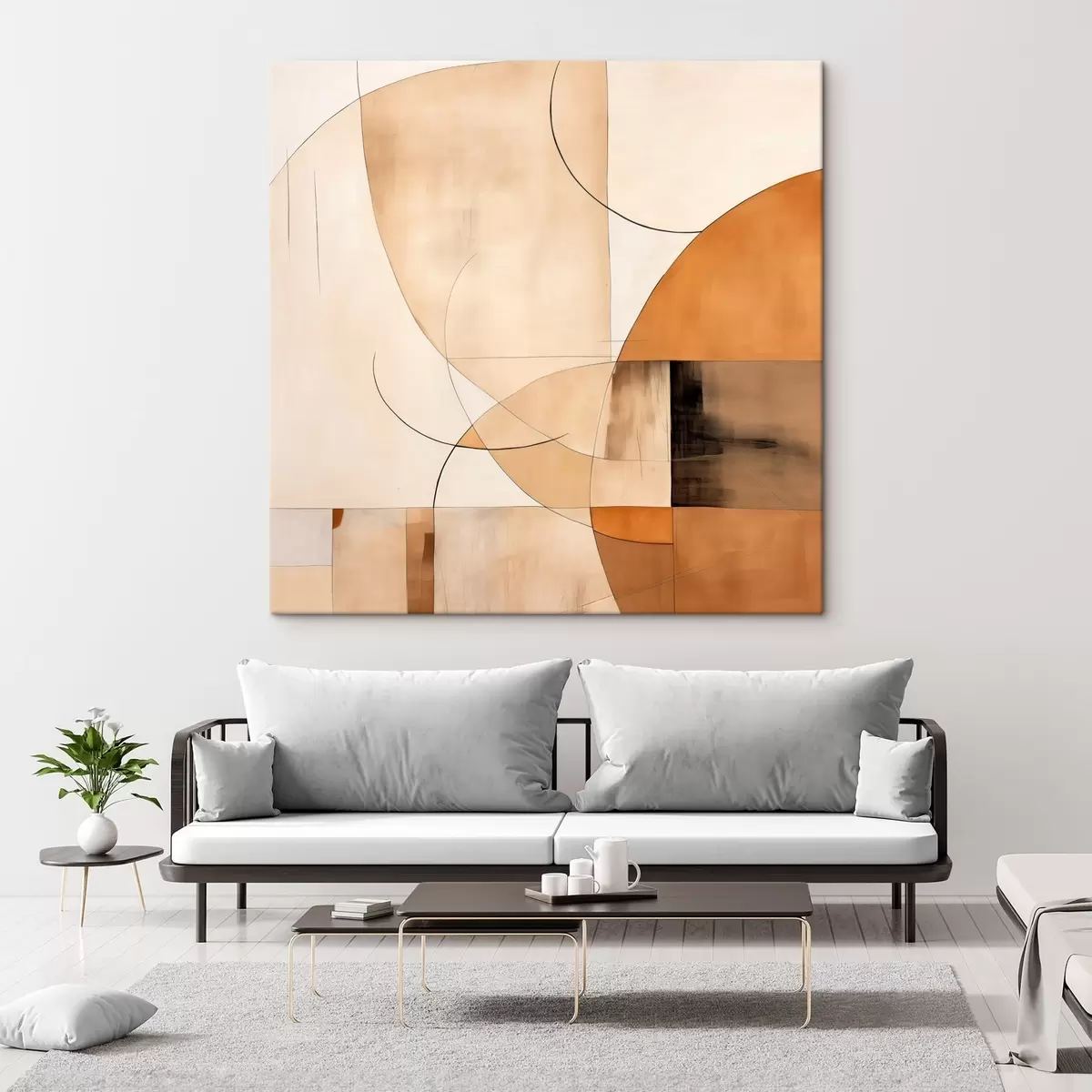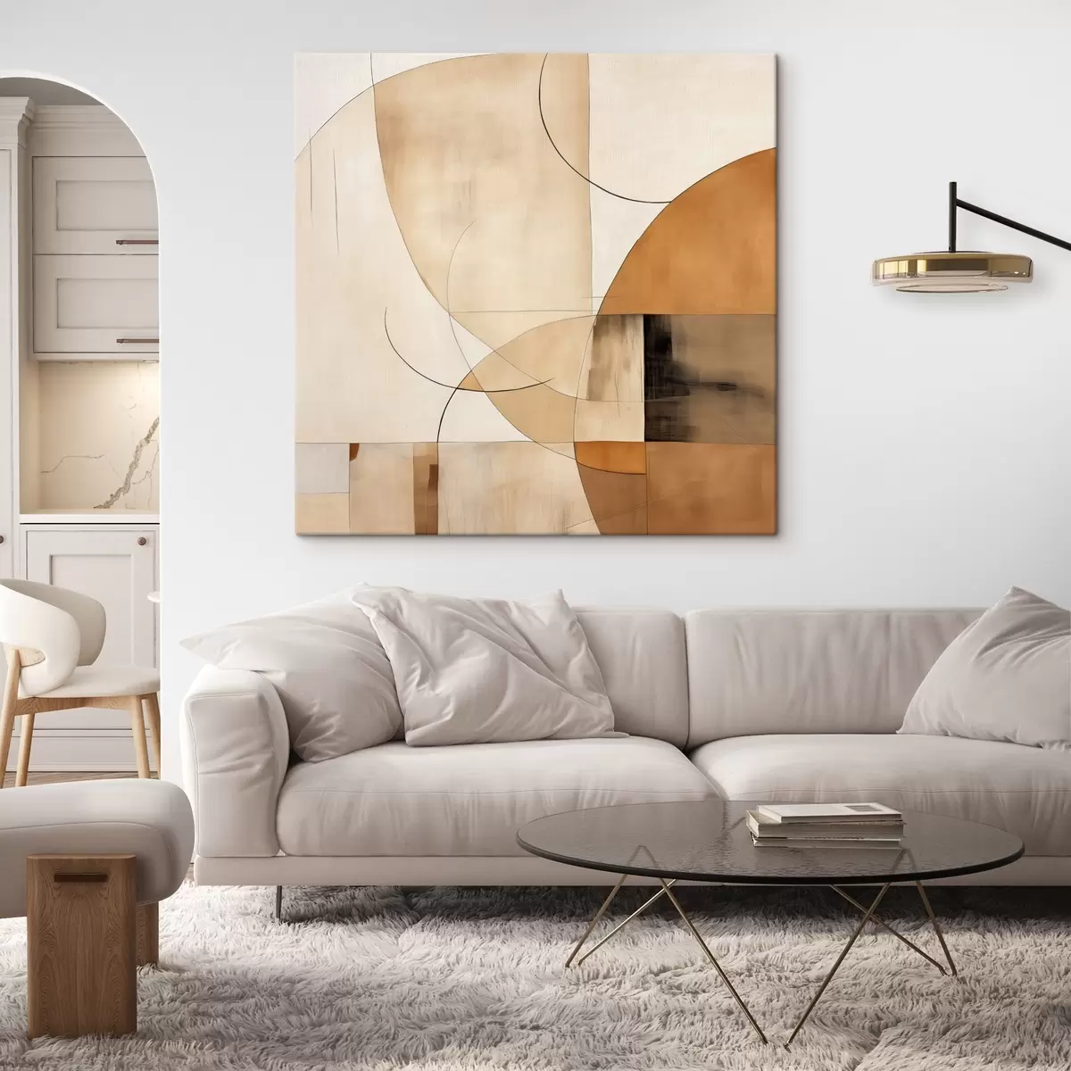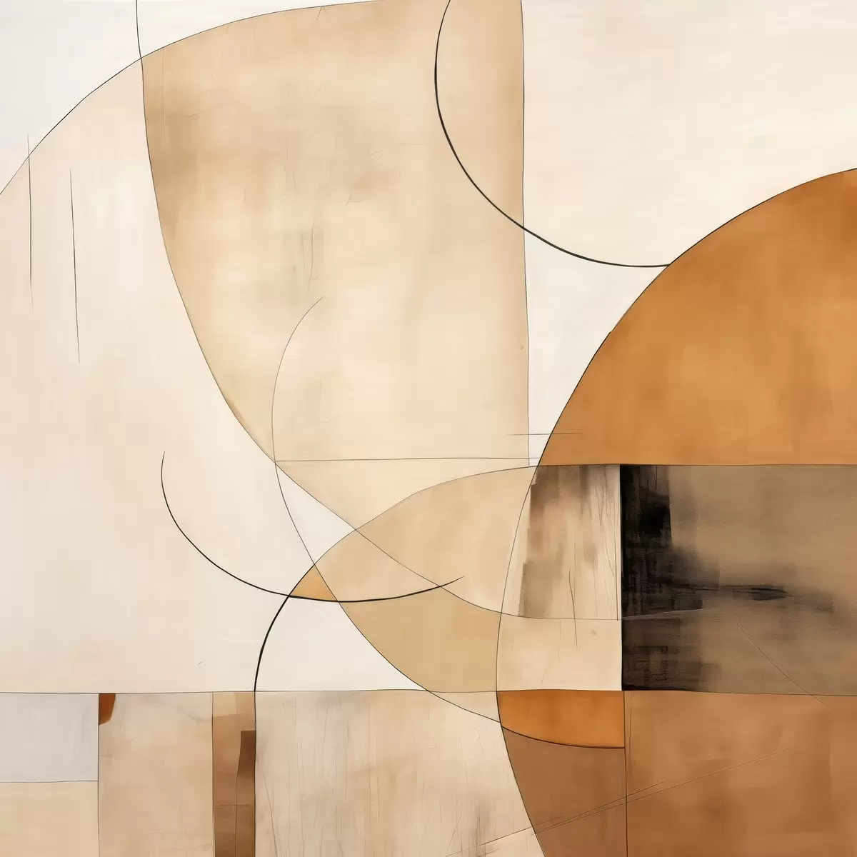 Maalid Geomeetriline abstraktsioon kõverate joonte ja beežide toonidega Nr s46320