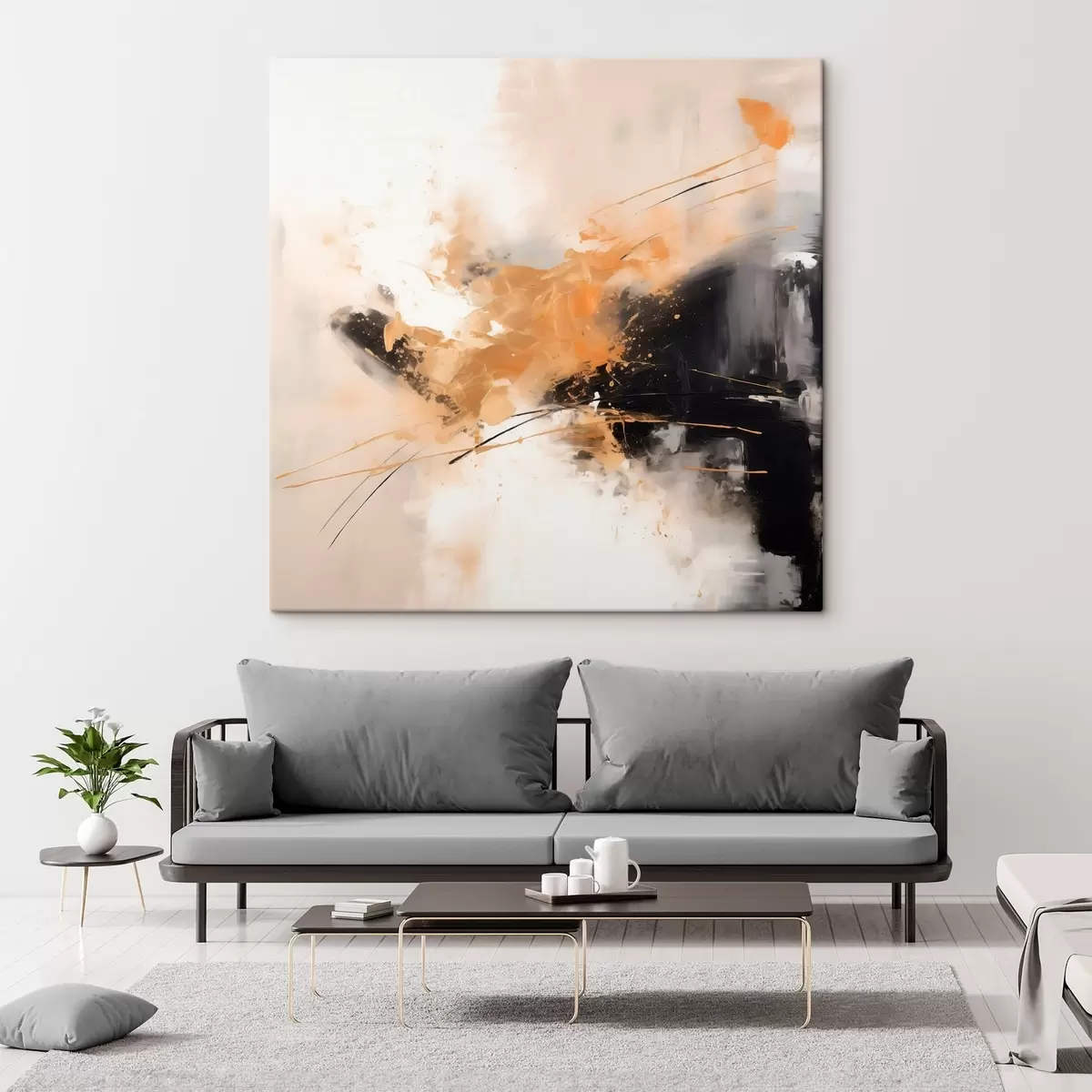 Maalid Oranžid ja mustad jooned, modernne abstraktsioon Nr s46327