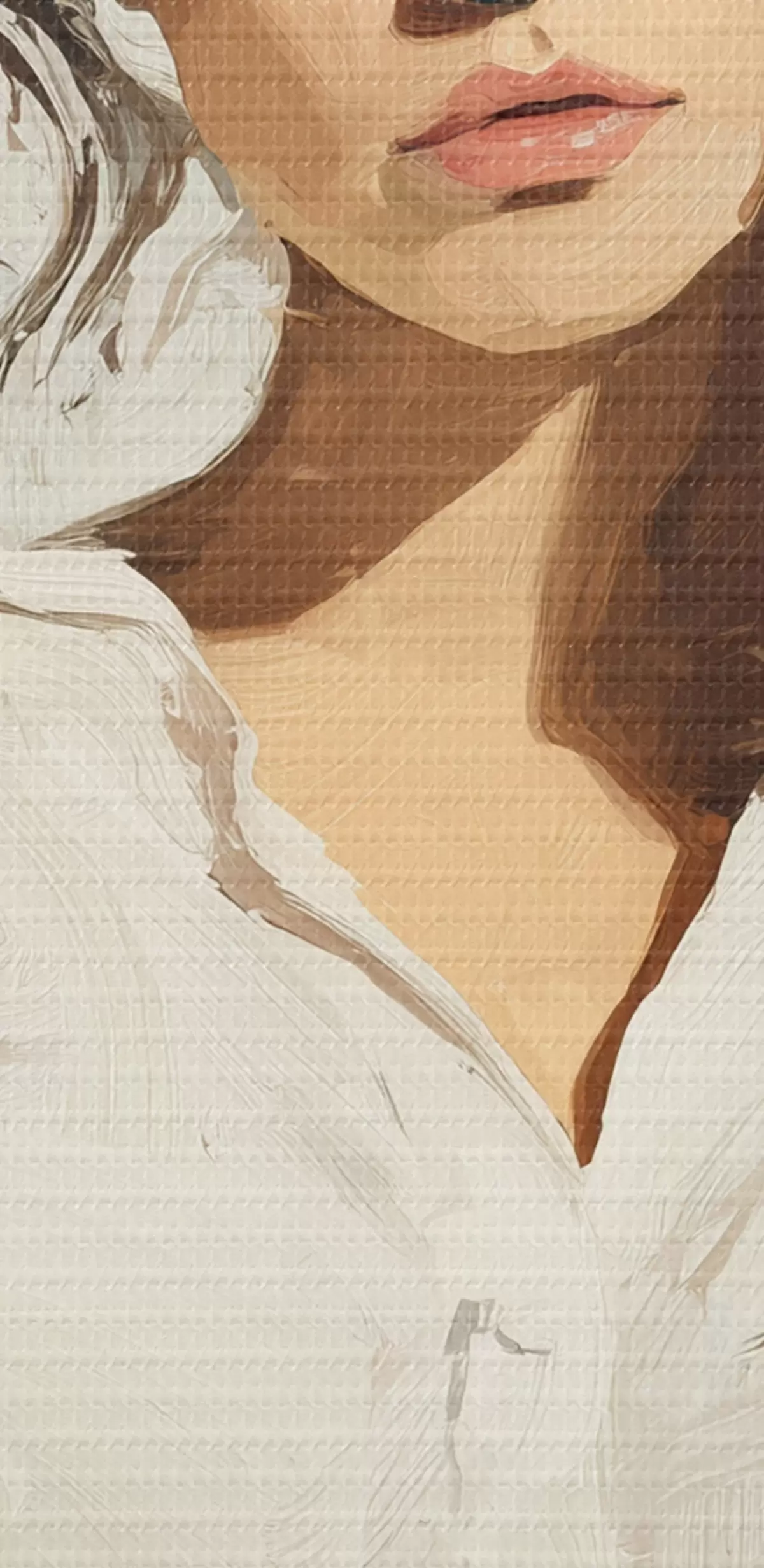 Selle lõuendi peenike niidipunus meenutab professionaalse kunstniku lõuendi pinda.