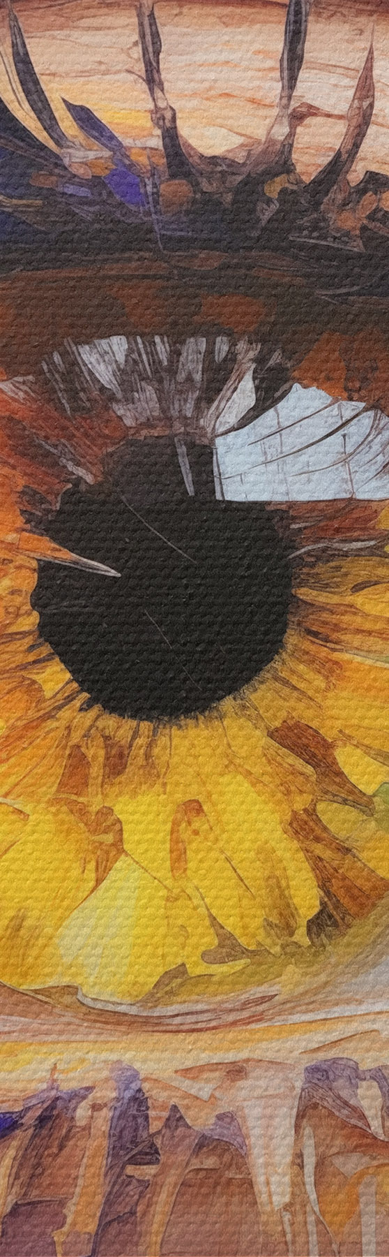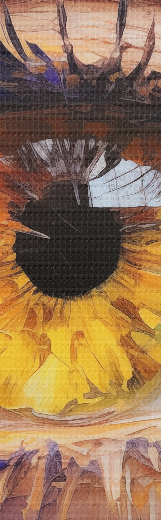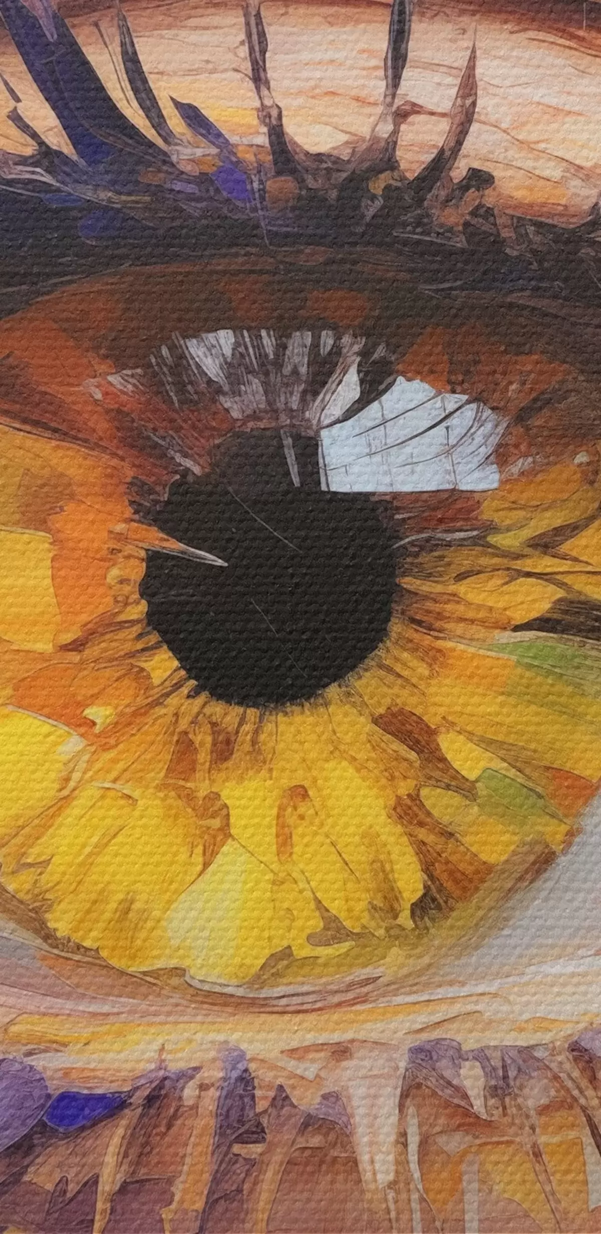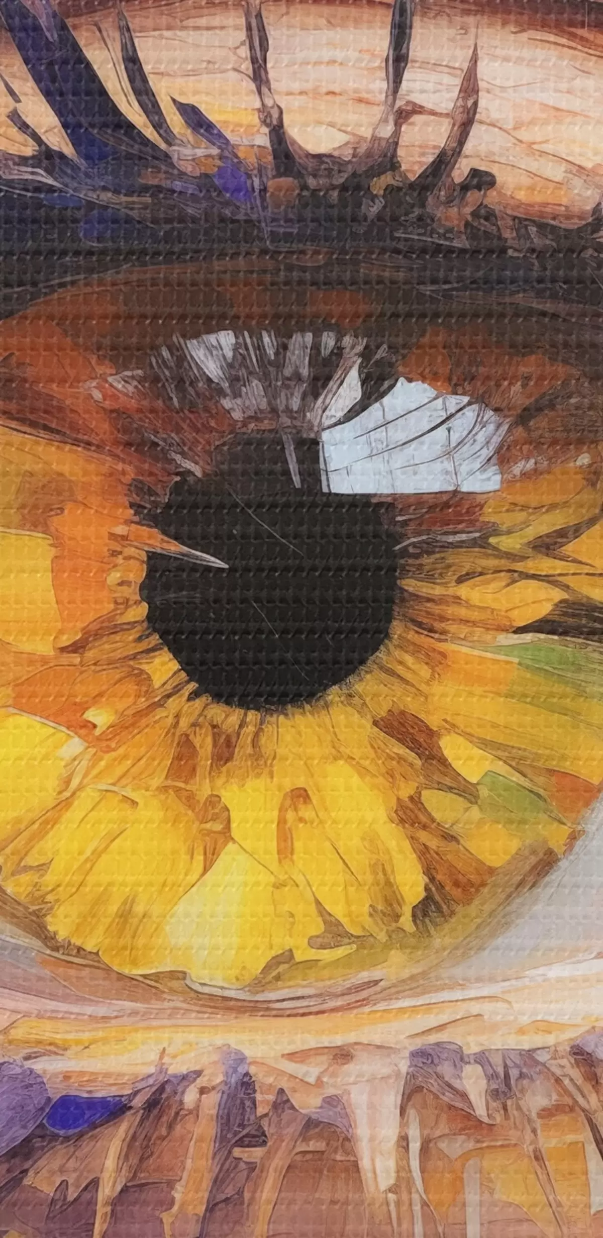 Selle lõuendi peenike niidipunus meenutab professionaalse kunstniku lõuendi pinda.