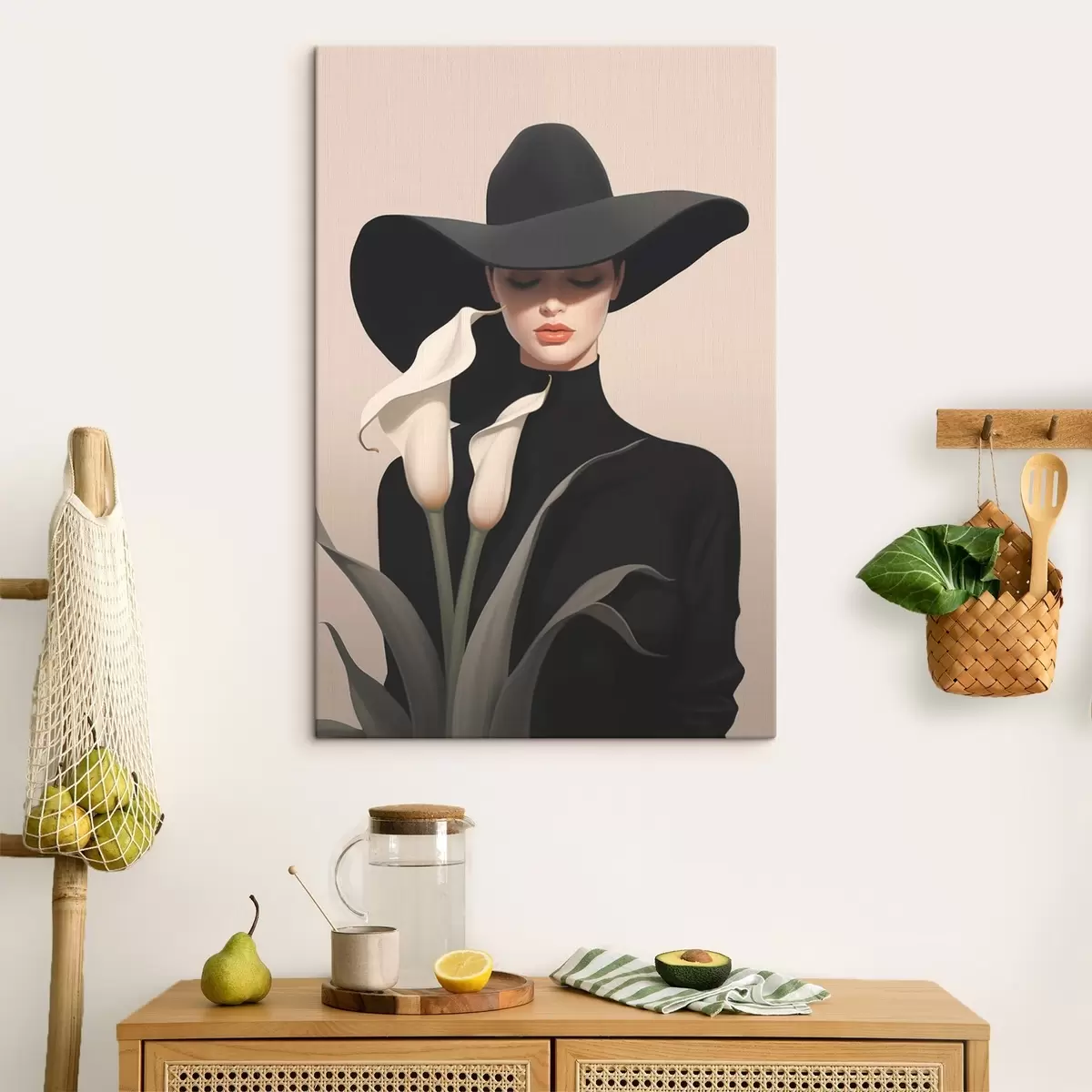 Maalid Tüdruk kübaraga ja kaladega Nr s46420