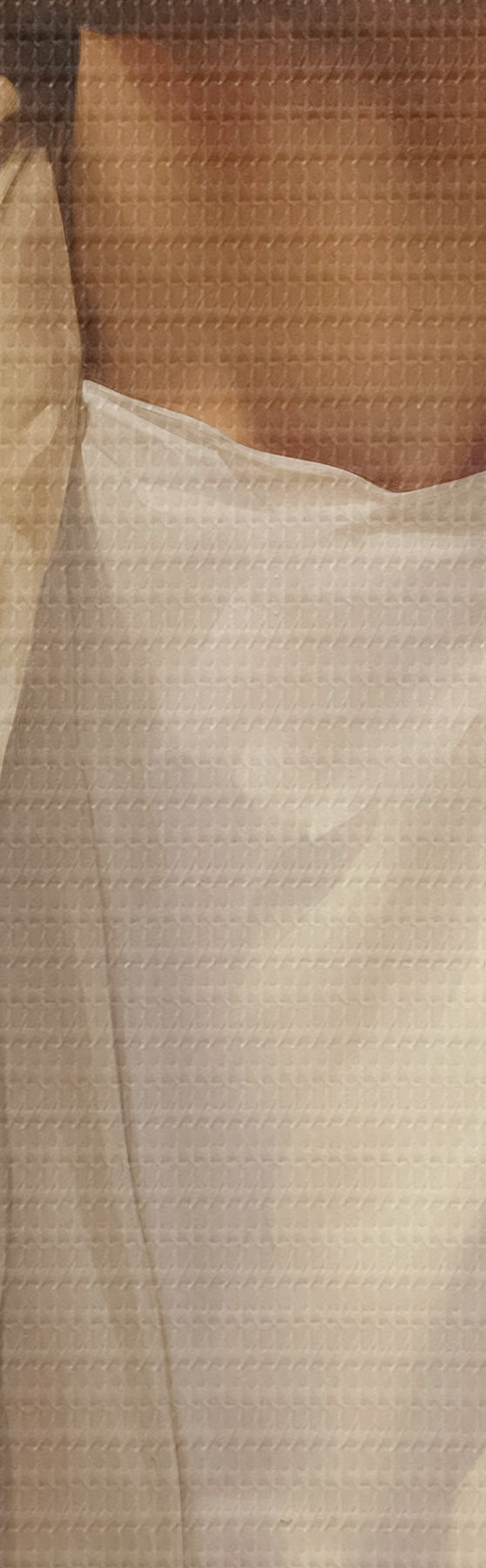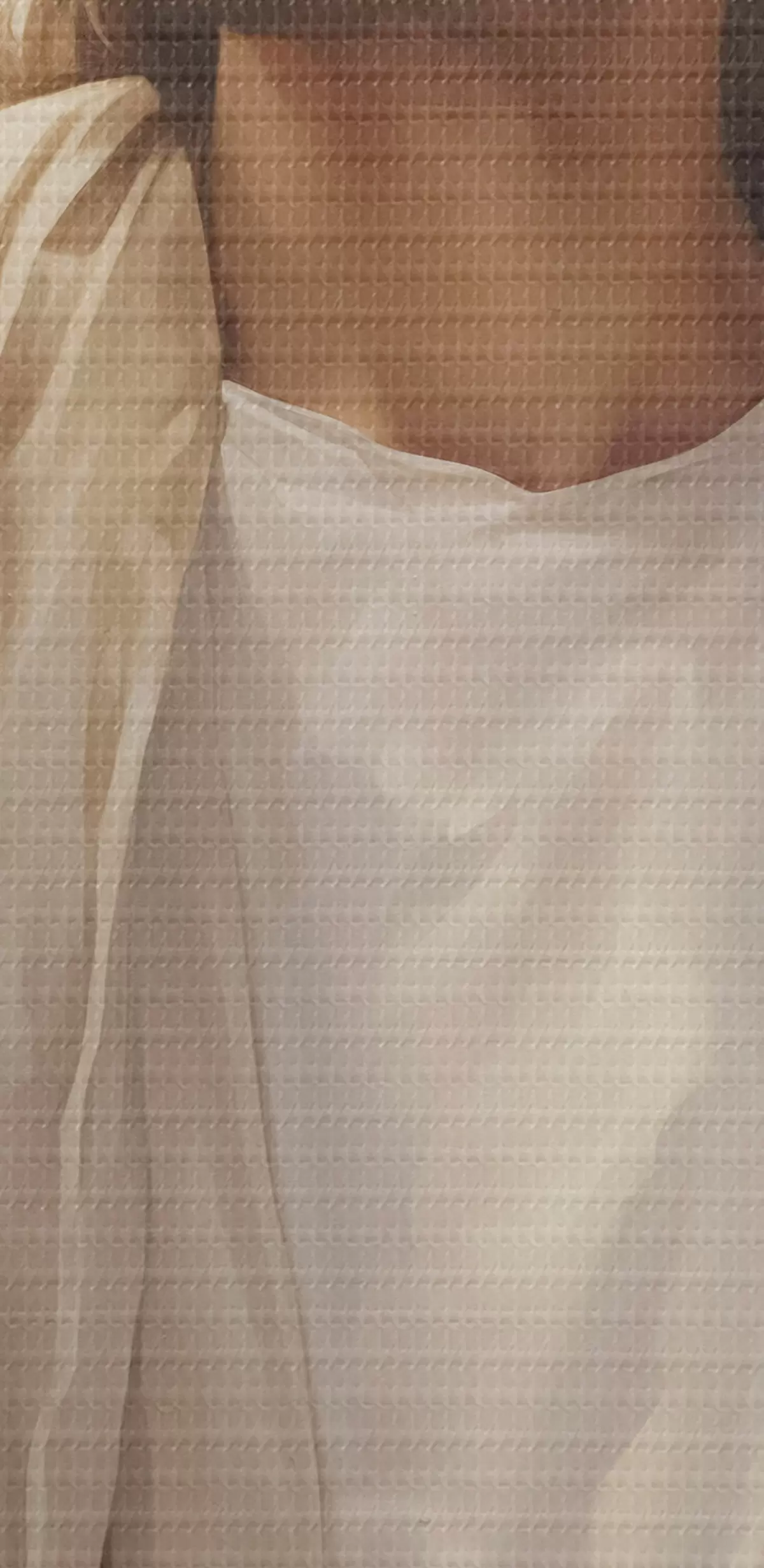 Selle lõuendi peenike niidipunus meenutab professionaalse kunstniku lõuendi pinda.