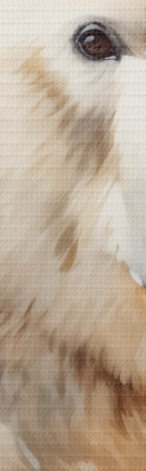 Selle lõuendi peenike niidipunus meenutab professionaalse kunstniku lõuendi pinda.