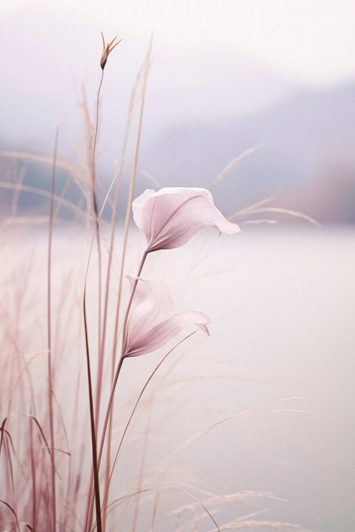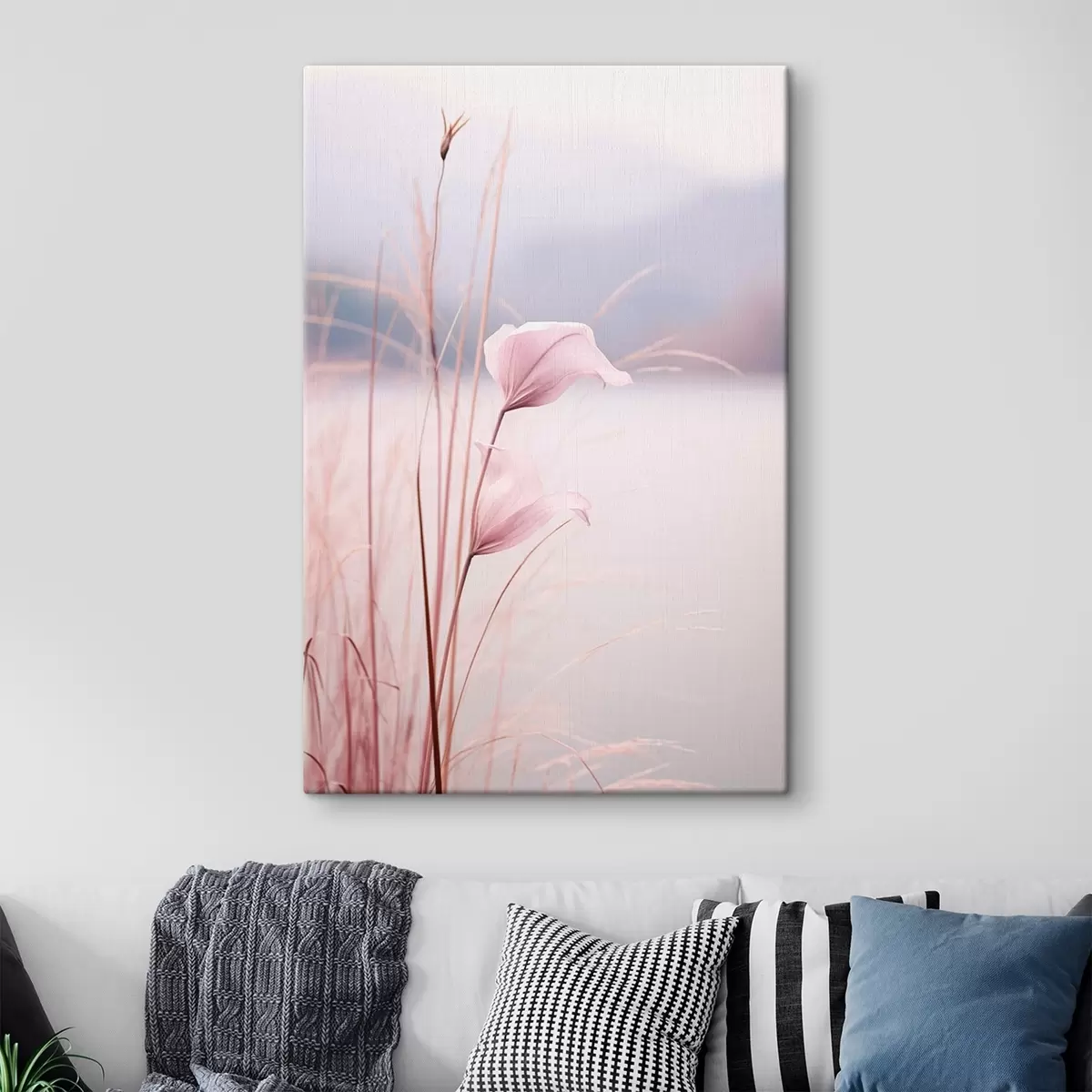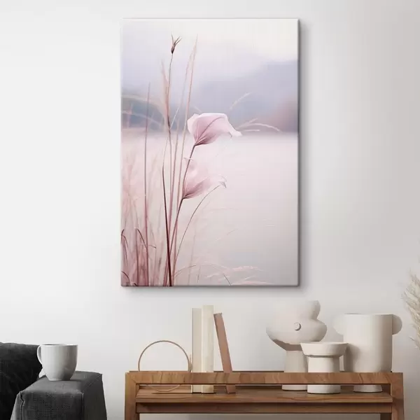 Maalid Õrnad roosad õied rahuliku järve ääres Nr s46503