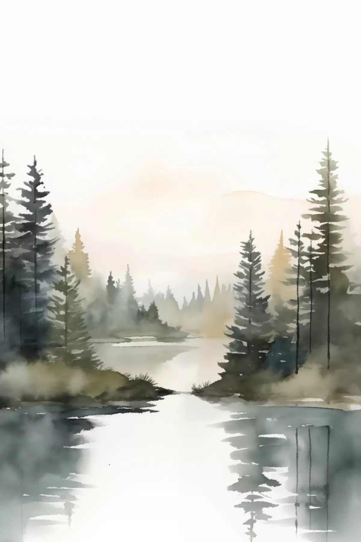Maalid Uduvihmane okasmets rahuliku jõe kohal, akvarellistiilis Nr s46507