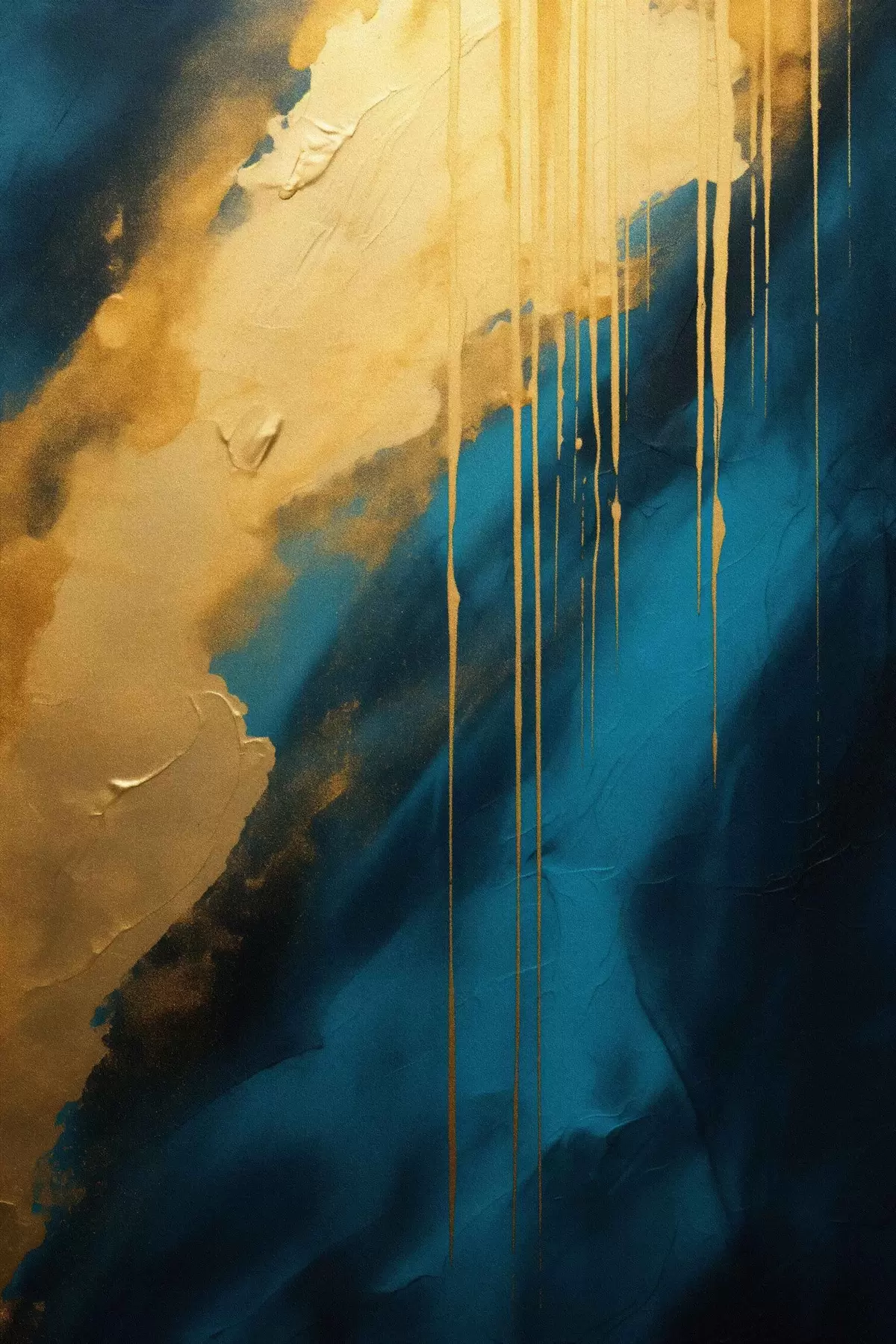 Maalid Teal ja sügavsinine abstraktne kujundus voolavate soojade rõhutatud detailidega Nr s46509