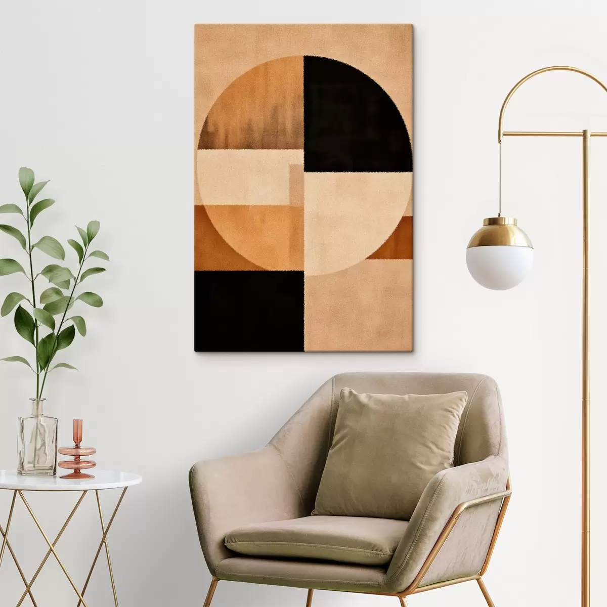 Maalid Poolringid ja ruudud soojades toonides, pehme tekstuuriga Nr s46531