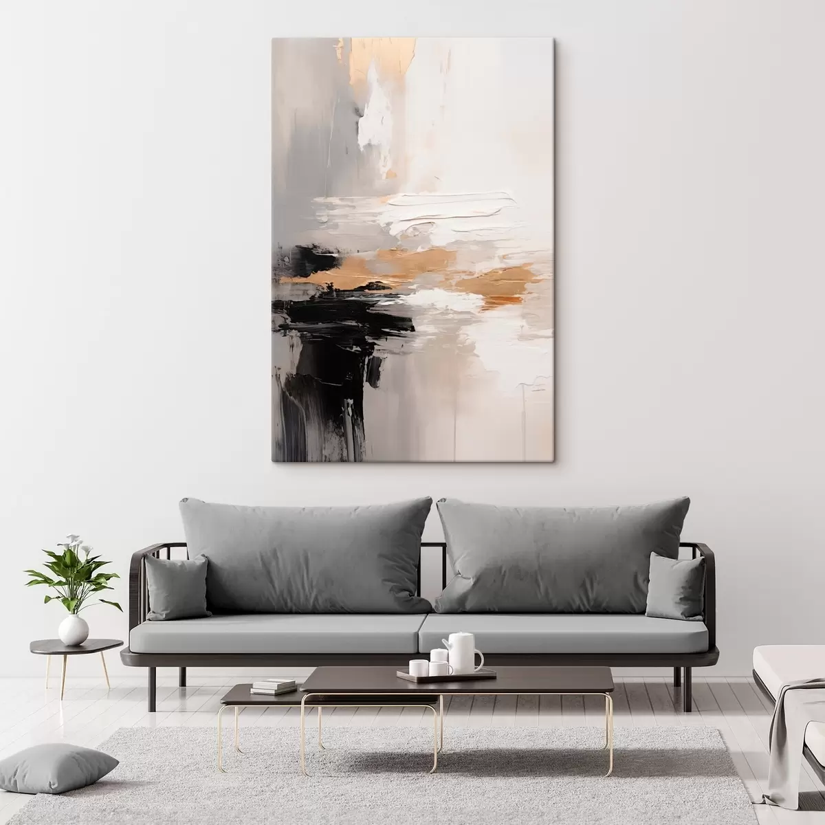 Maalid Nude-toonilised jooned kontrastse musta ja okra kihiga Nr s46544