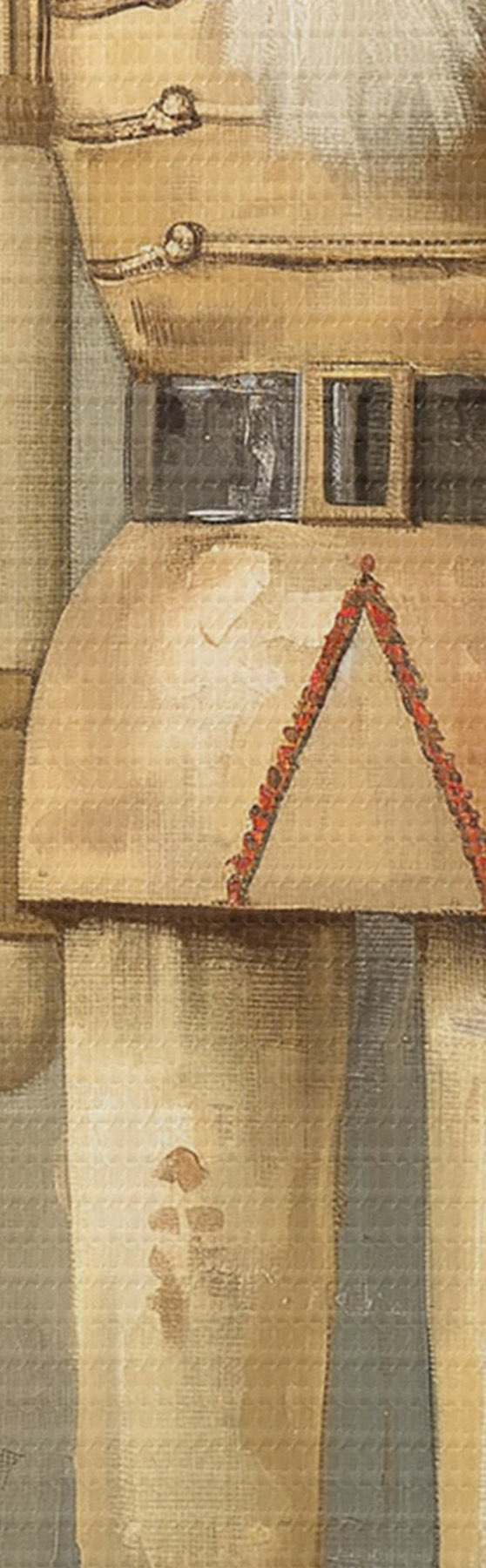 Selle lõuendi peenike niidipunus meenutab professionaalse kunstniku lõuendi pinda.
