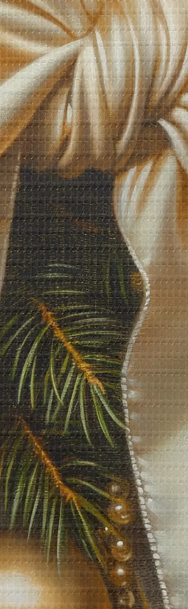 Selle lõuendi peenike niidipunus meenutab professionaalse kunstniku lõuendi pinda.