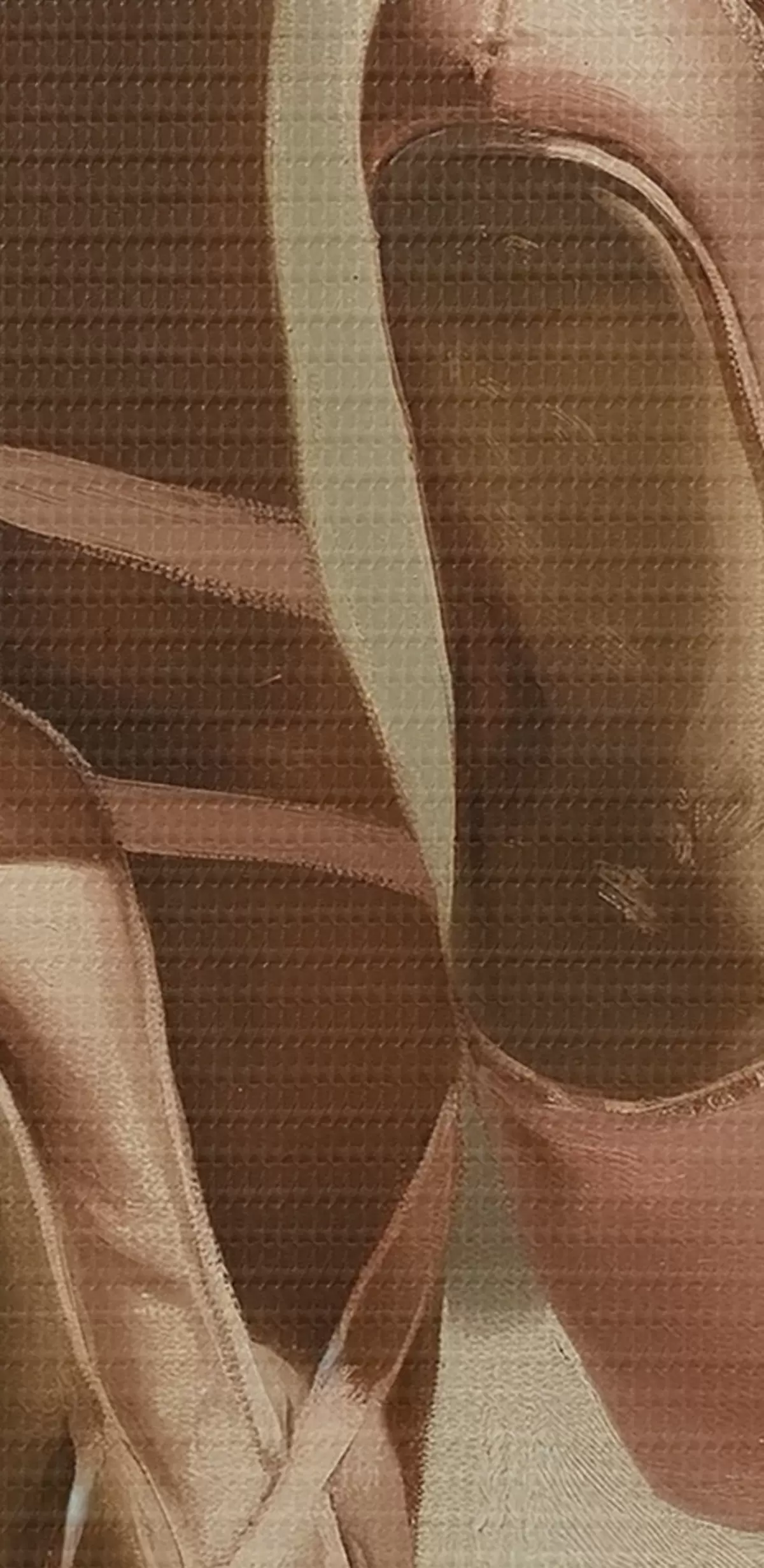 Selle lõuendi peenike niidipunus meenutab professionaalse kunstniku lõuendi pinda.